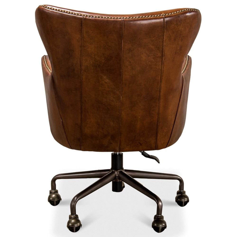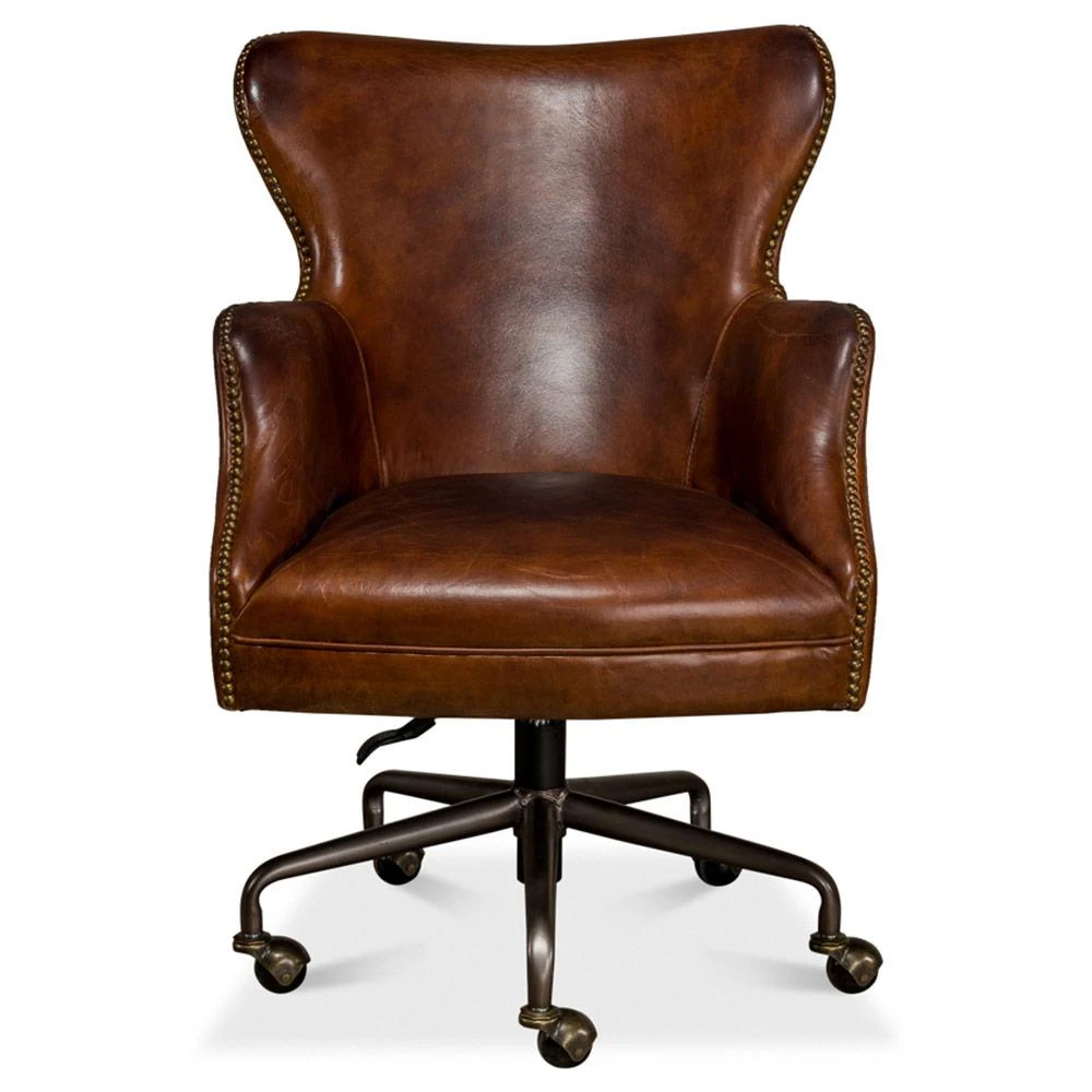 Alexander Rustic Brown Upholstered Leather Metal Base Nailhead Swivel Office Chair