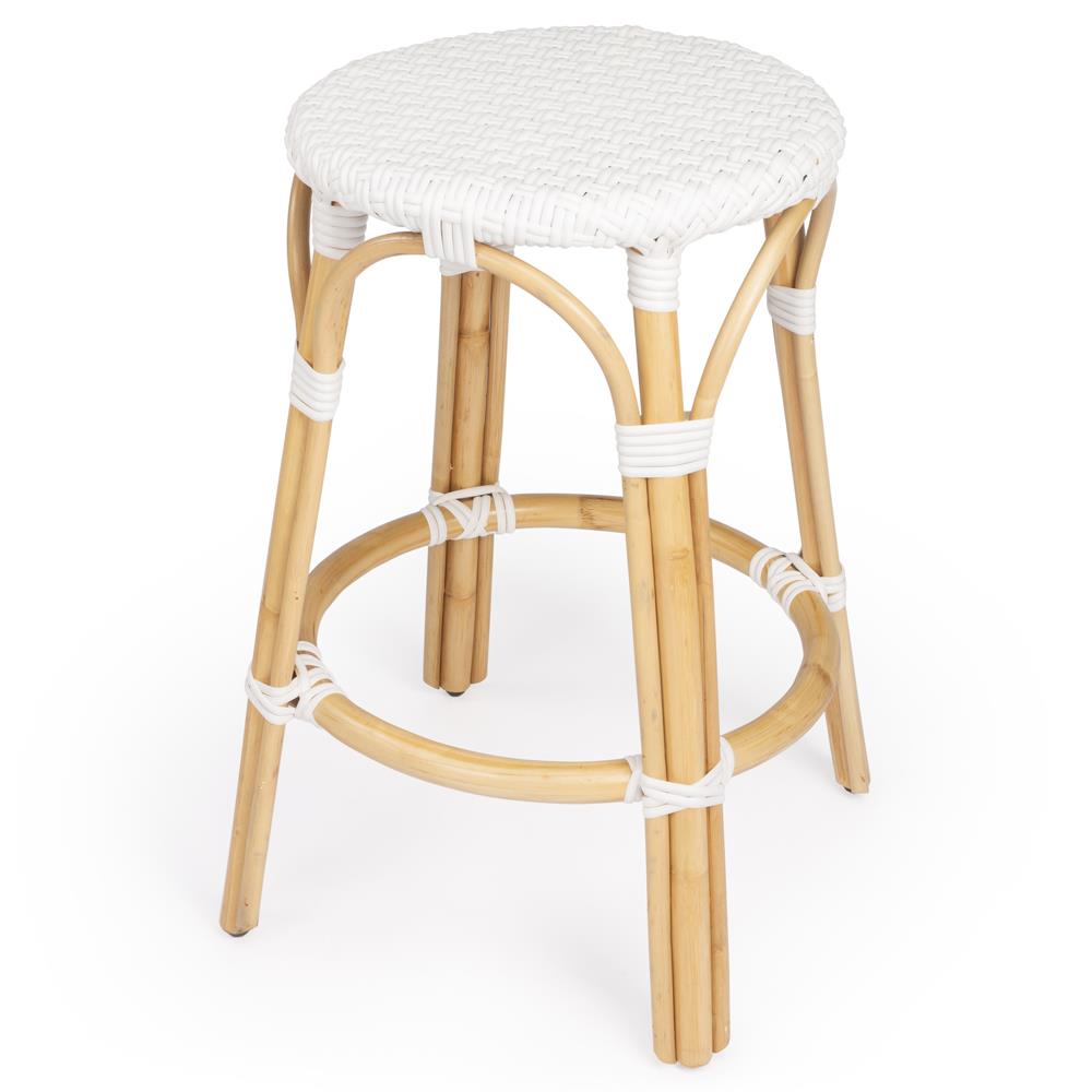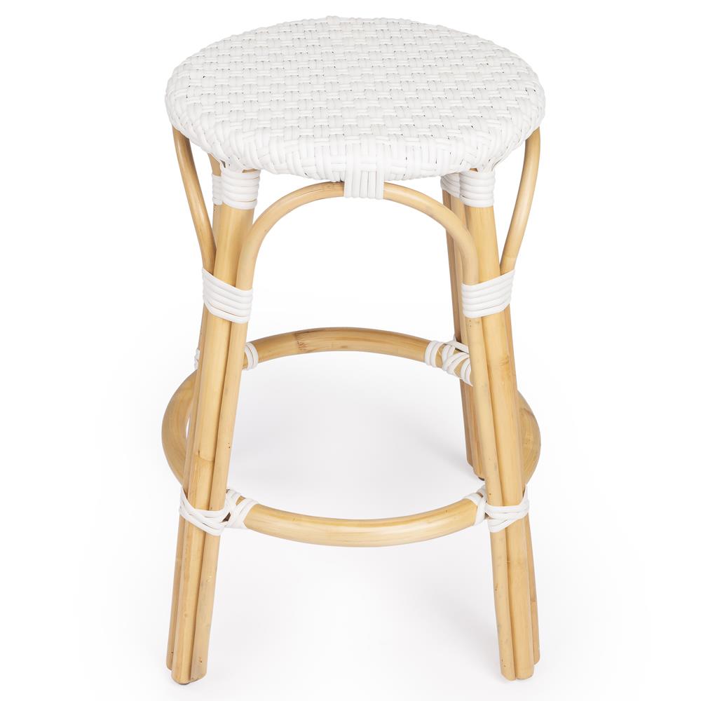 Riona Coastal Beach White Performance Green Woven Rattan Counter Stool