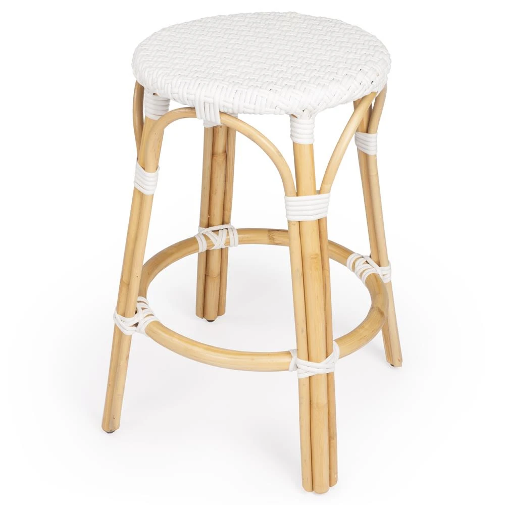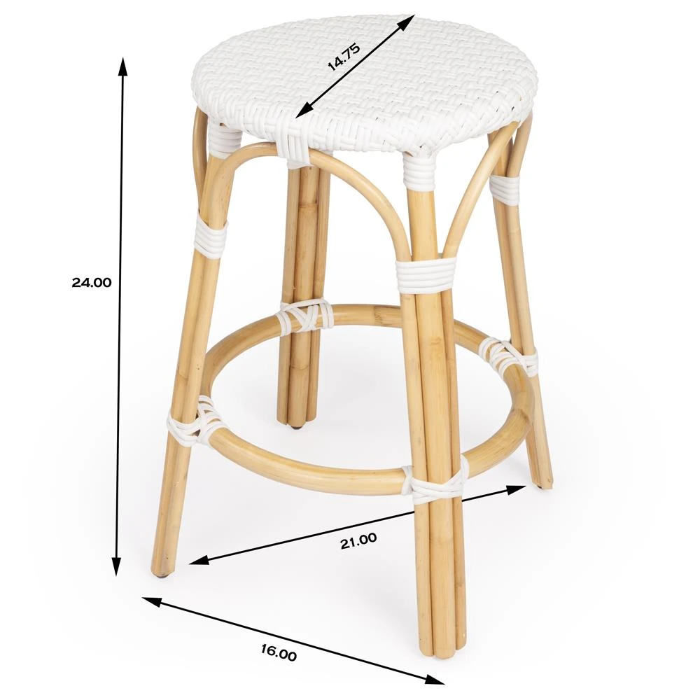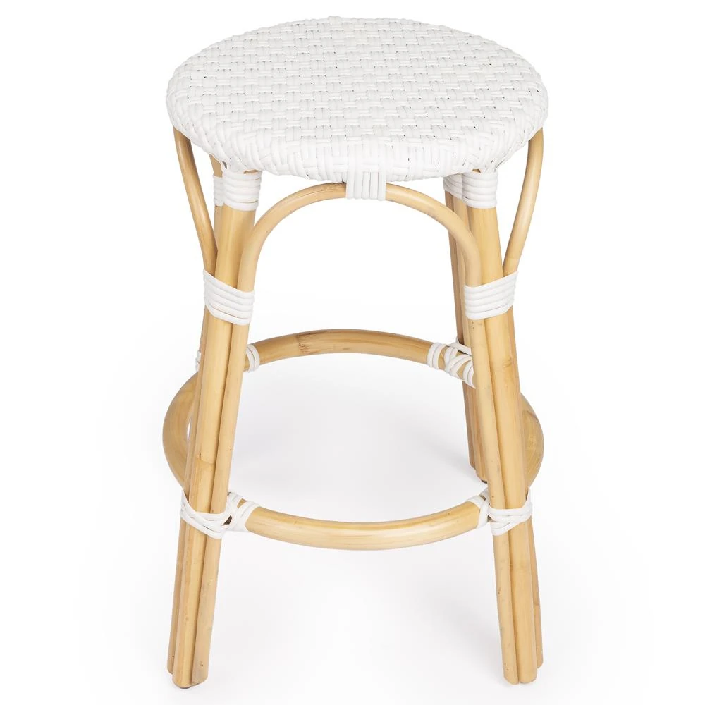 Lily Coastal Beach White Woven Brown Rattan Counter Stool