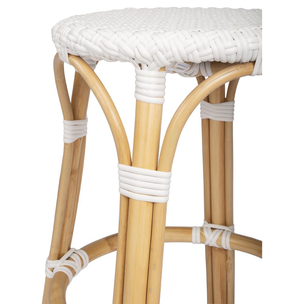 Vin Coastal White Upholstered Cushion Natural Woven Cane Black Wood Counter Stool