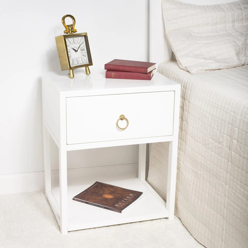 • Featuring its functional 1 drawer is adorned with gleaming metallic gold statement hardware