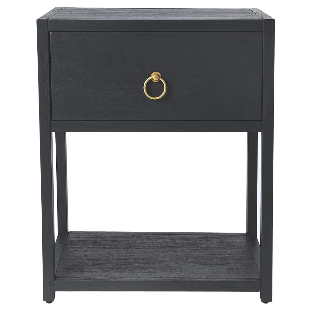 • Featuring its functional 1 drawer is adorned with gleaming metallic gold statement hardware