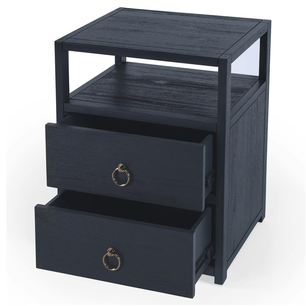 • Elliana Coastal Beach Dark Blue Woven Rattan Nightstand|Kathy Kuo Home