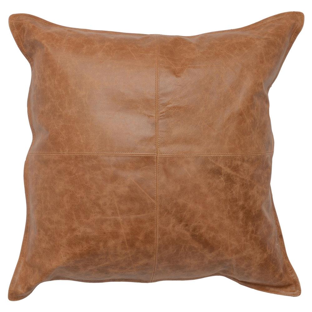 With its dyed and lightly distressed chestnut brown leather front, the Selene throw pillow adds rustic charm to any seat in your home. ... more