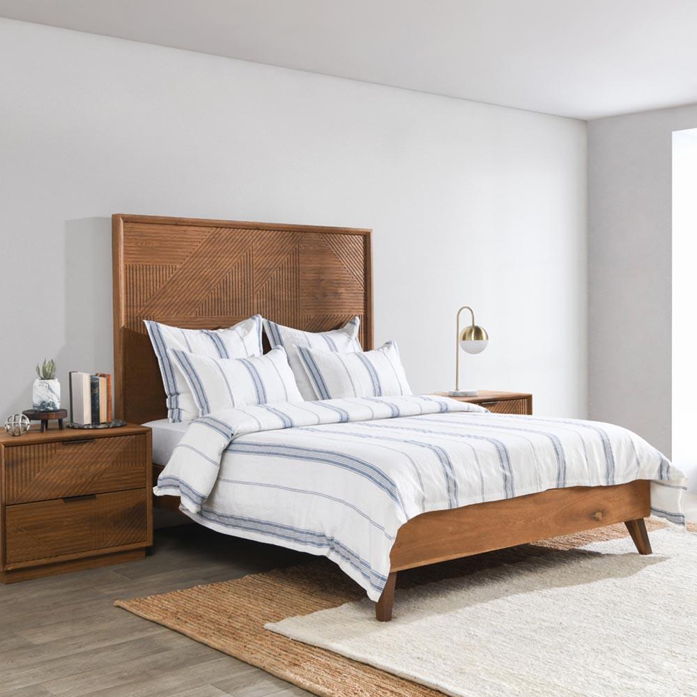 Jarrah Coastal Beach Blue Striped Linen Duvet - Queen