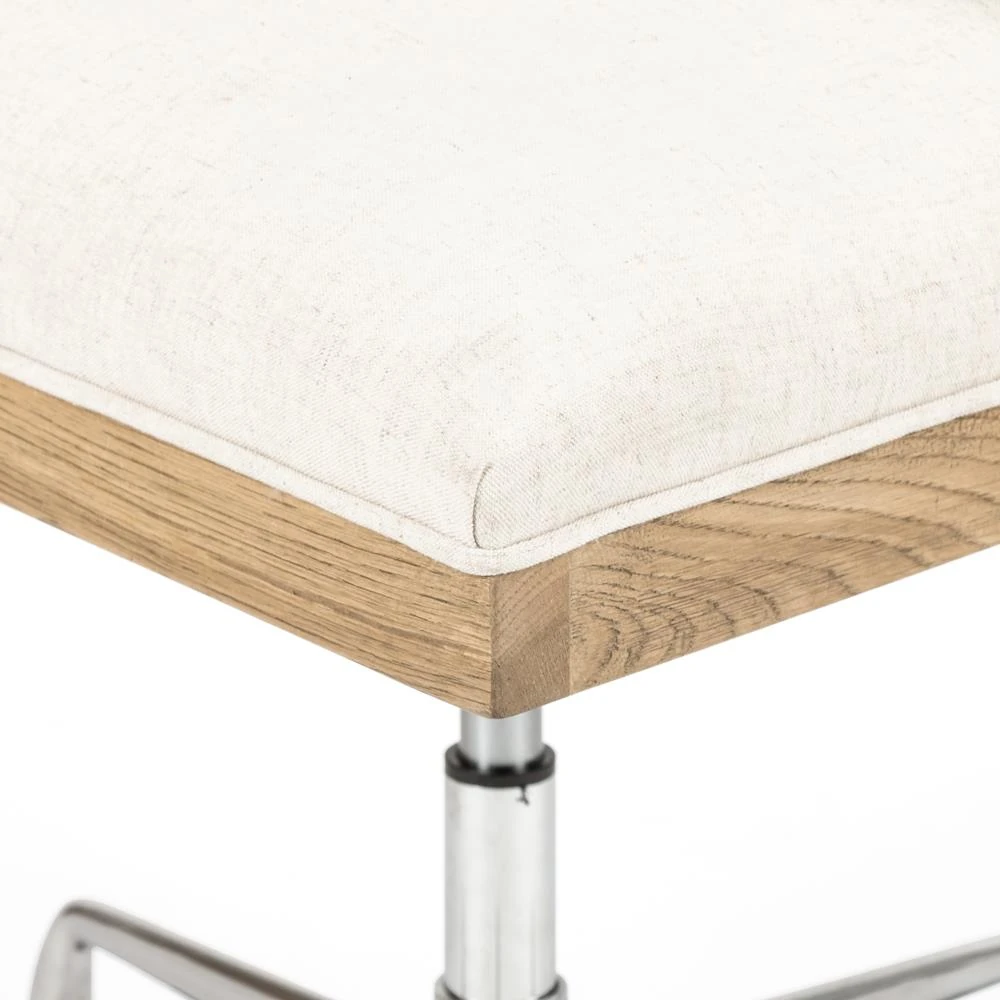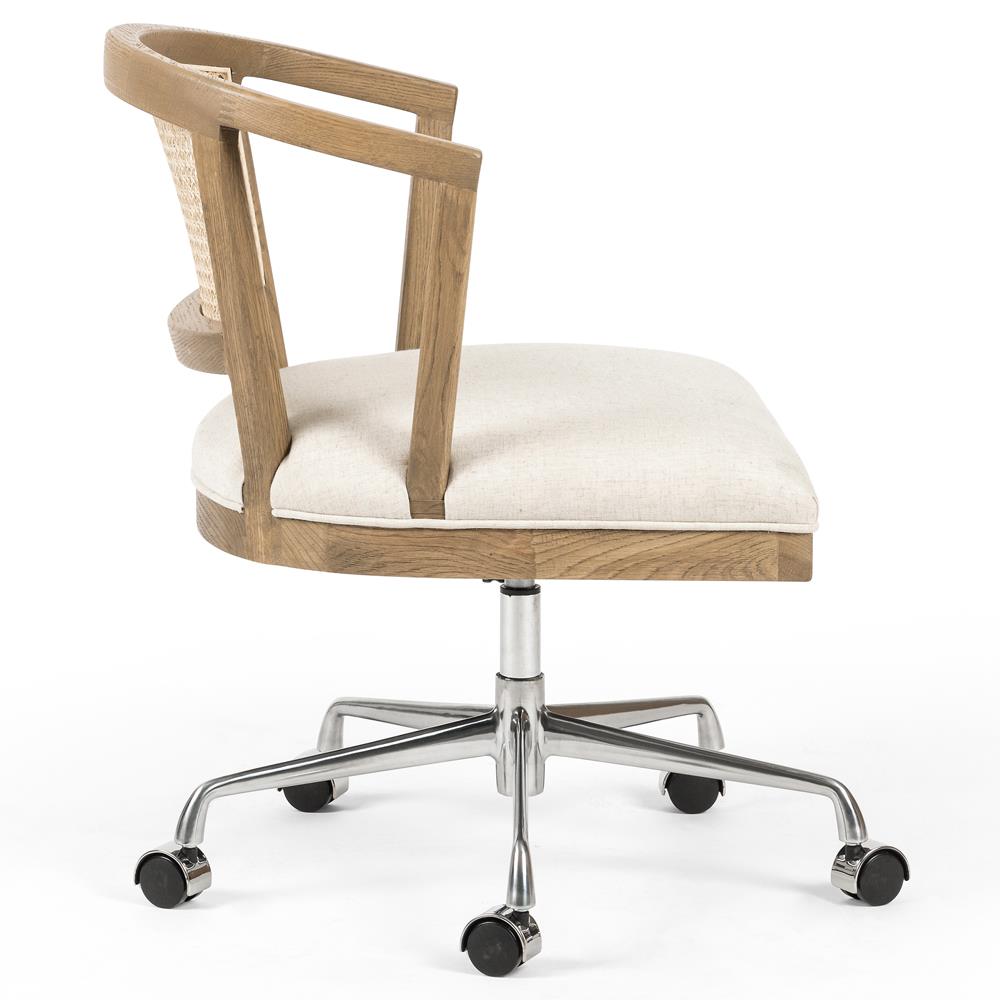 • Jolie Rustic Cream Upholstered Brown Wood Leather Arms Steel Base Office Chair|Kathy Kuo Home