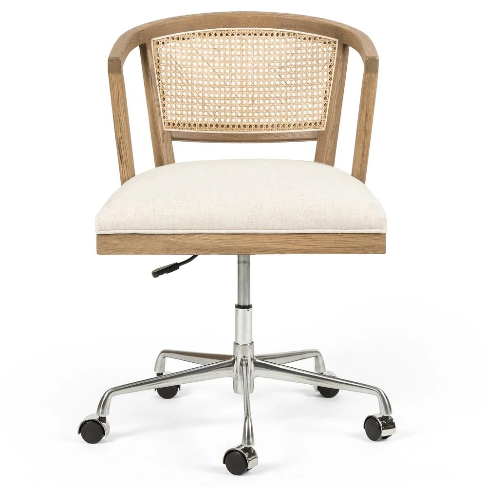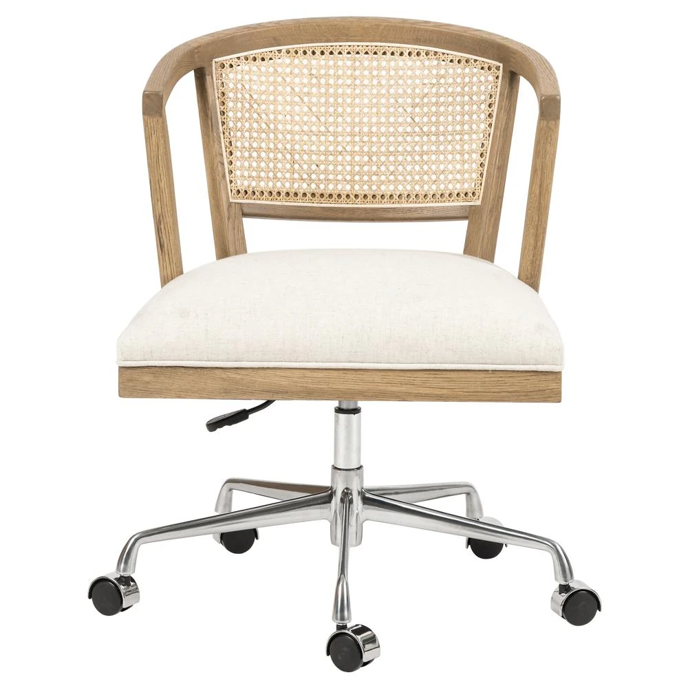 Form meets function in the oh-so-stylish Alek office chair. Light brown nettlewood mixes with natural cane and white linen-blend perfor ... more