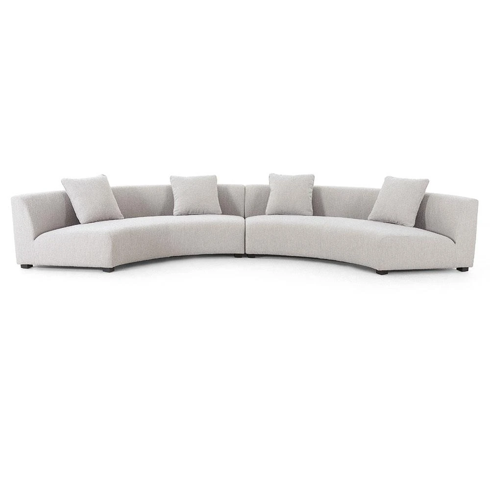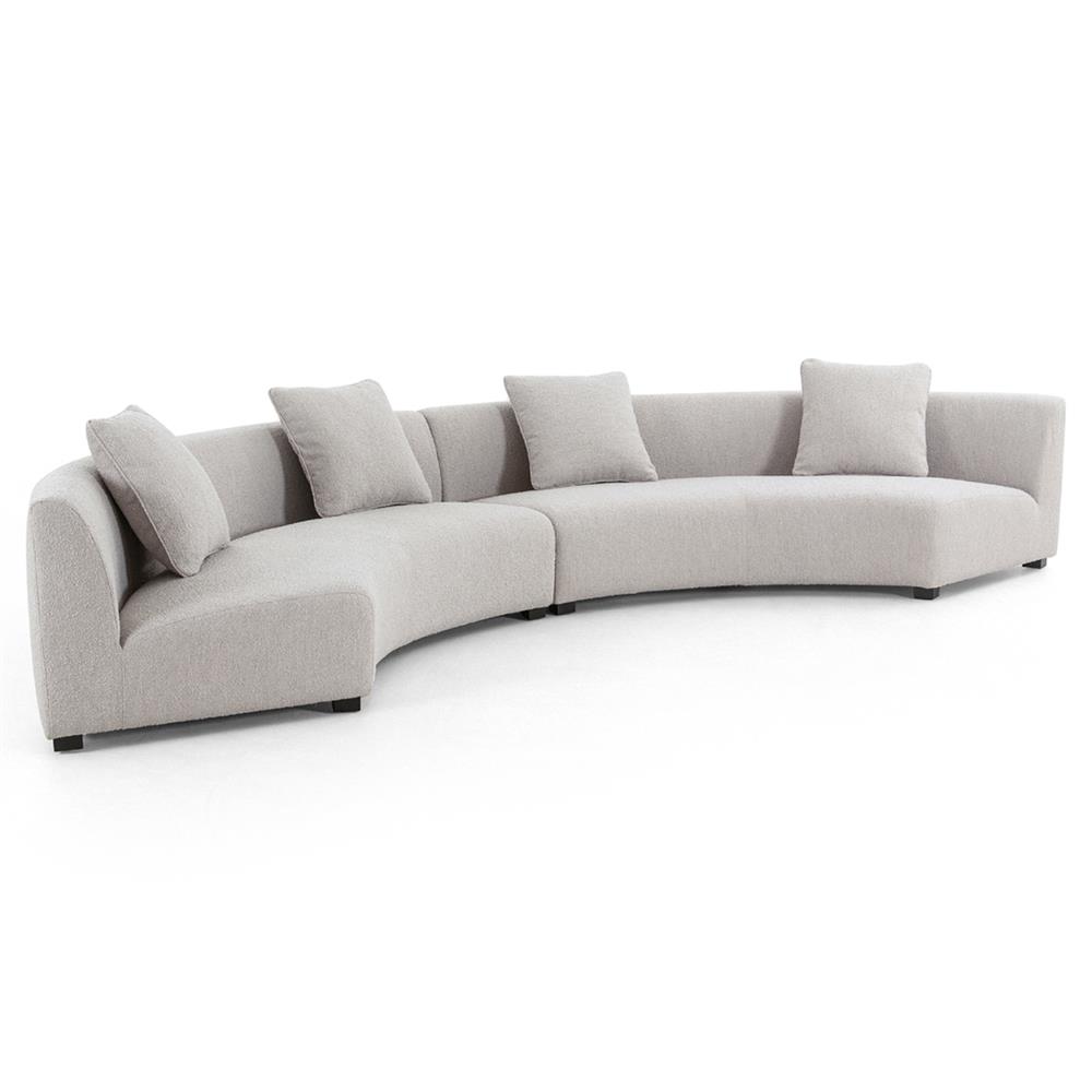 Zoe Modern Light Grey Performance Boucle Black Wood 2 Piece Curved Sectional - 176"Wx67"D