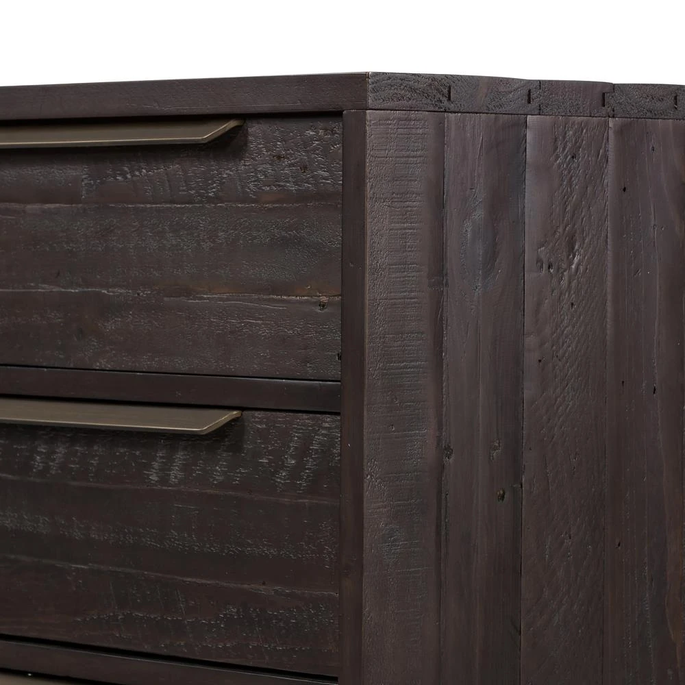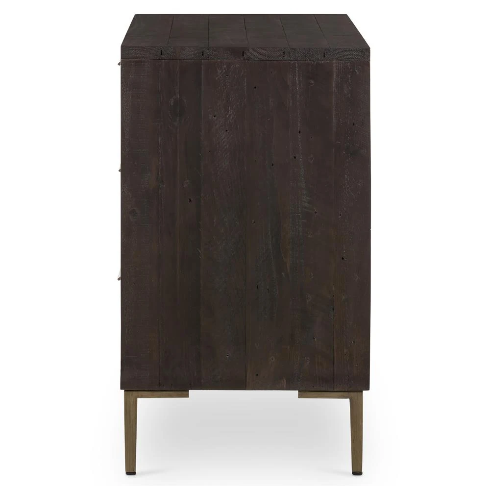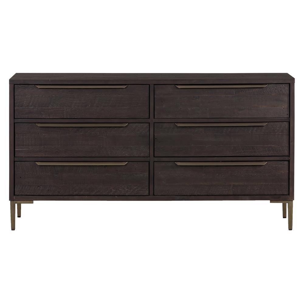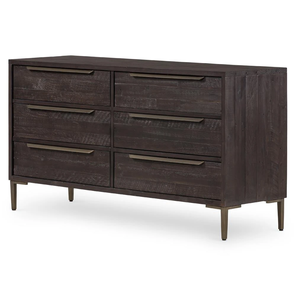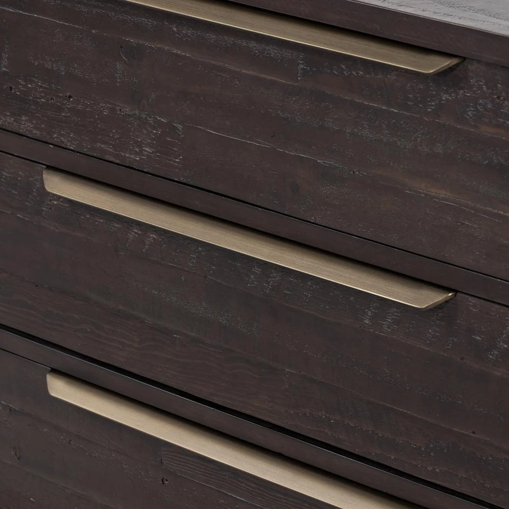 Yvette Rustic Dark Brown Reclaimed Pine Wood Gold Iron 6 Drawer Double Dresser