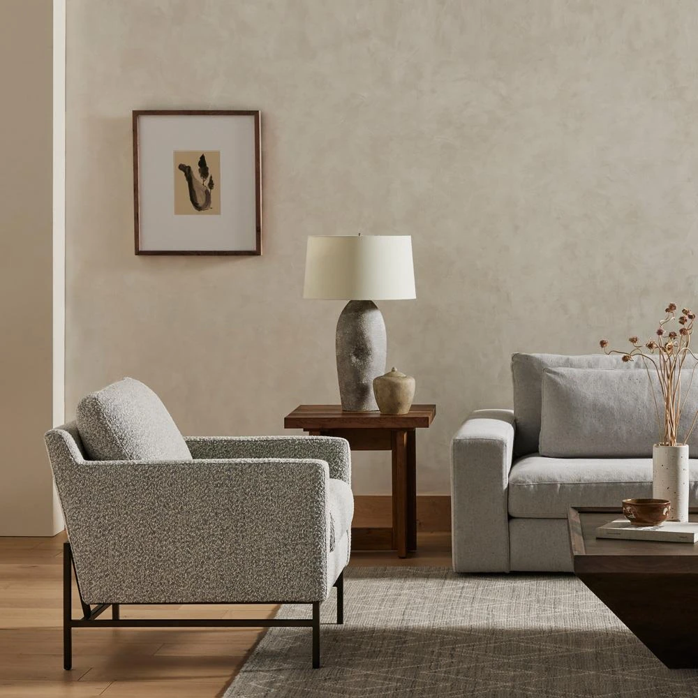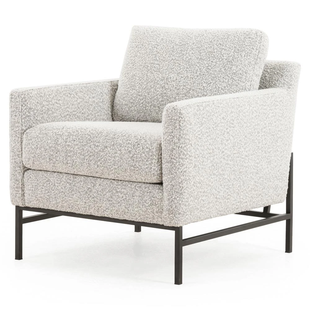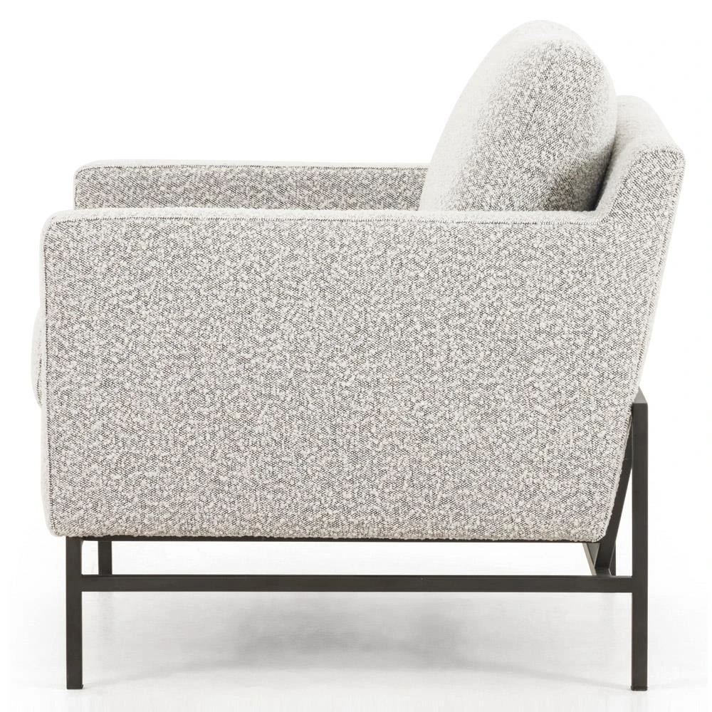 Lilian Industrial Grey Performance Boucle Black Iron Frame Arm Chair