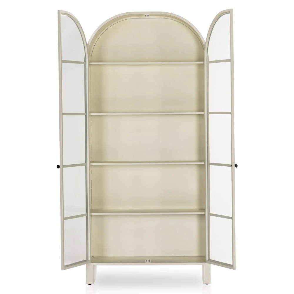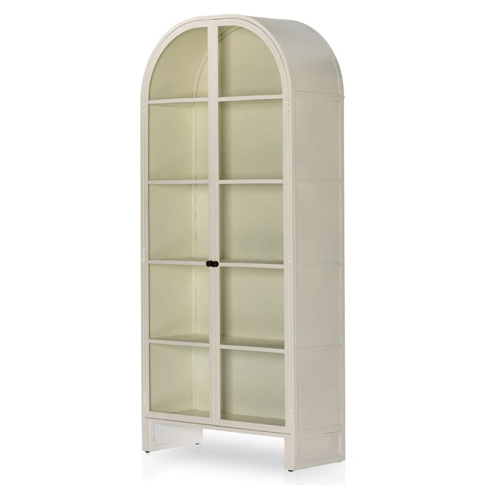 Sheila Industrial Clear Glass White Iron Frame Curved 2 Door Display Case