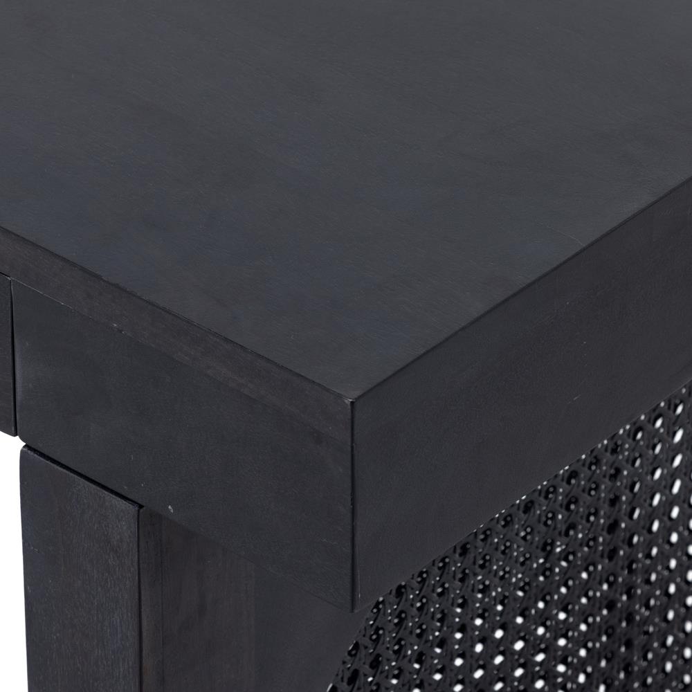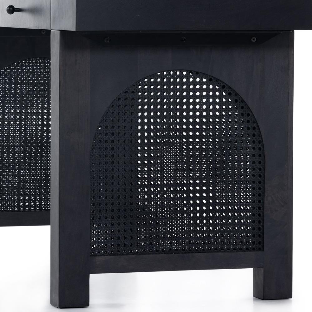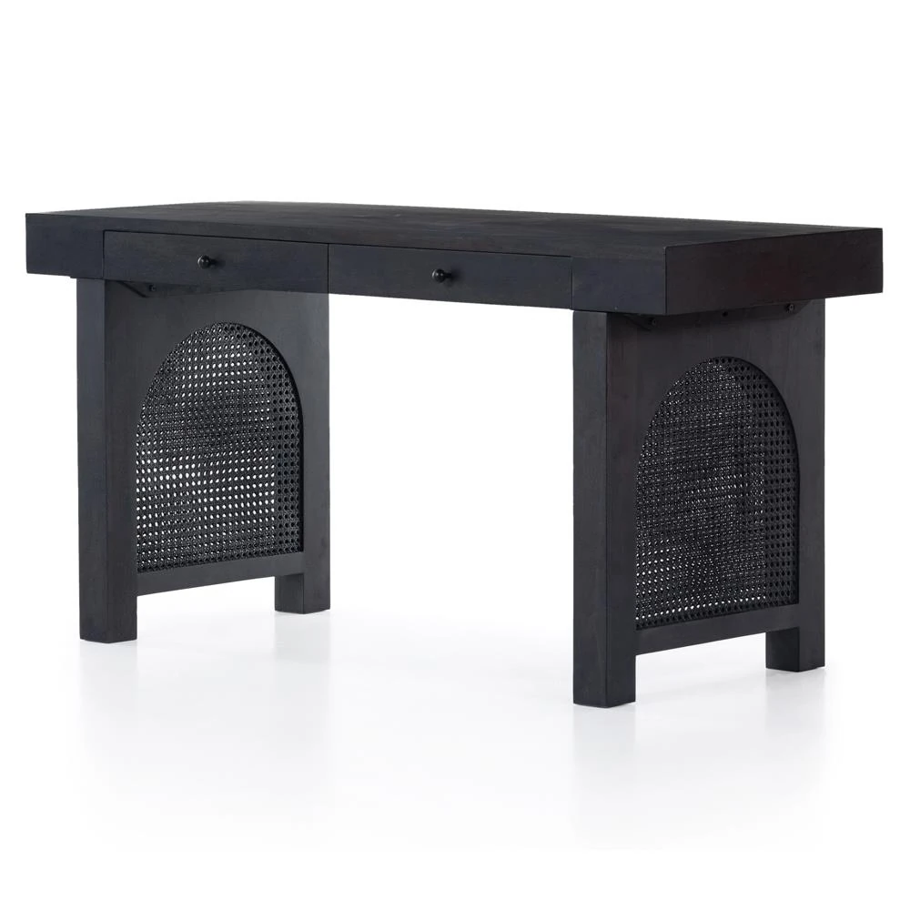 Kashton Mid Century Modern Black Wash Mango Wood Woven Cane 2 Drawer Desk