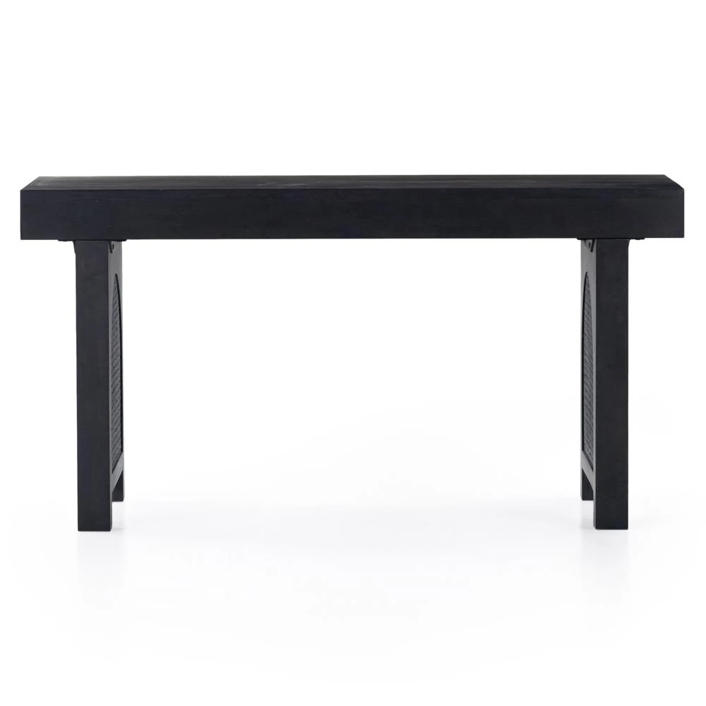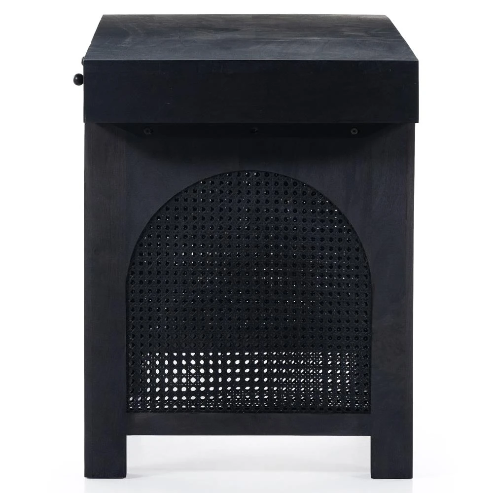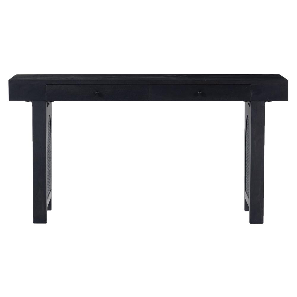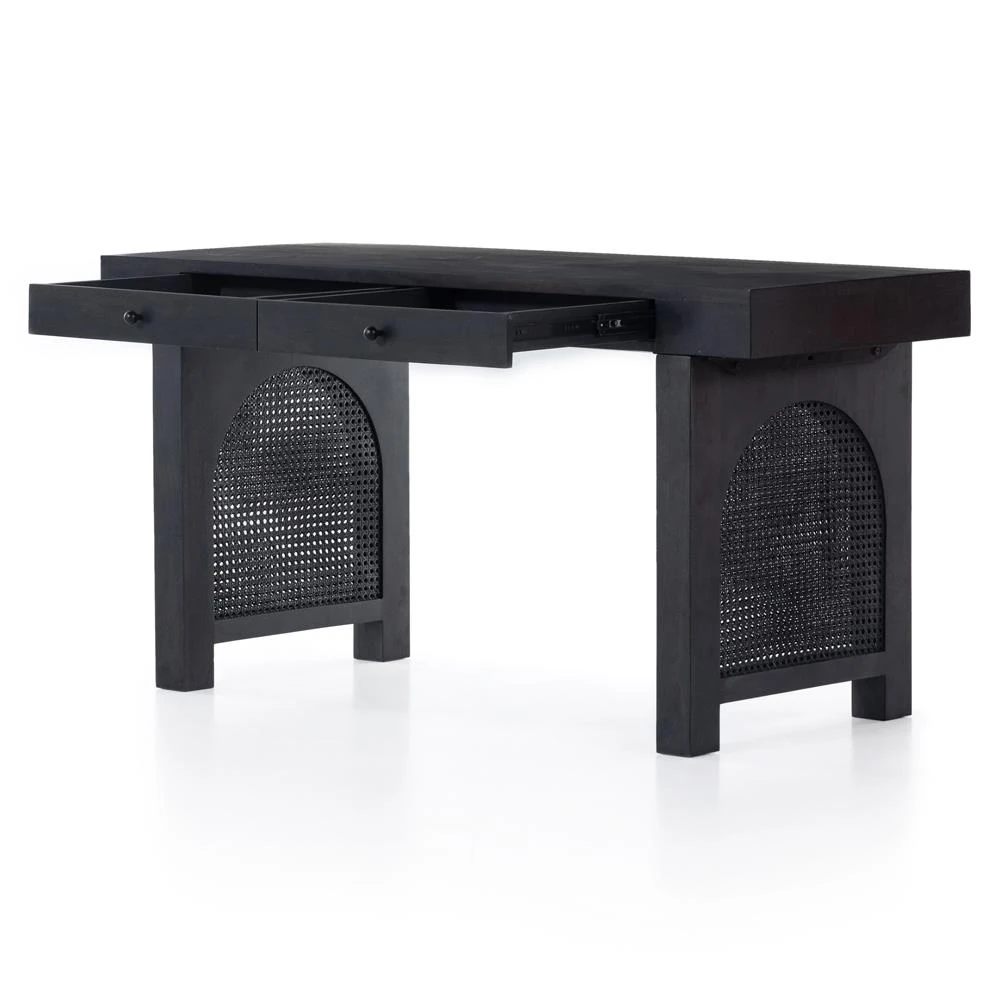 Kashton Mid Century Modern Black Wash Mango Wood Woven Cane 2 Drawer Desk