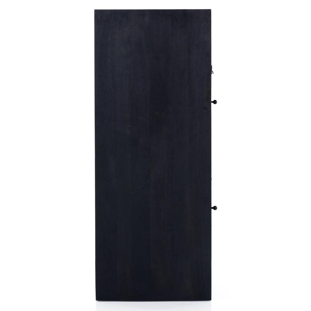 • Features black-washed mango encases textural cane door panels and black-finished iron hardware