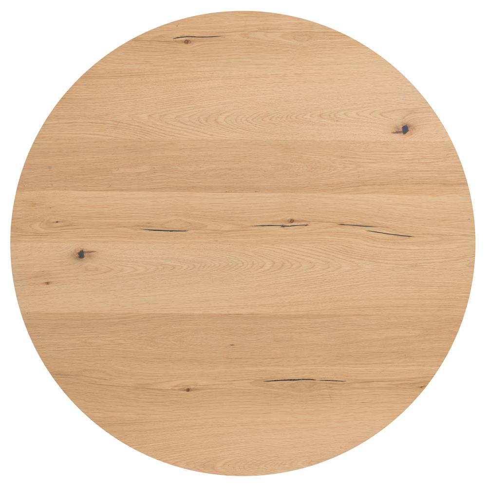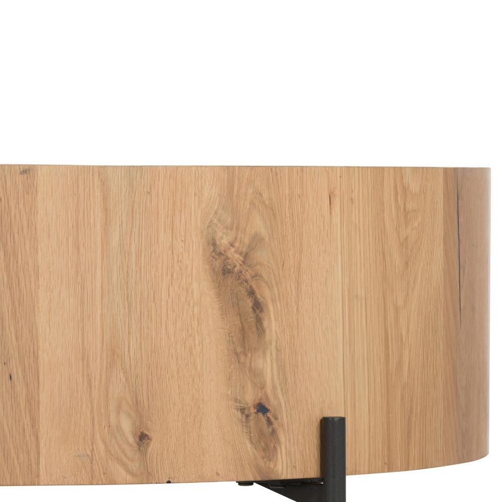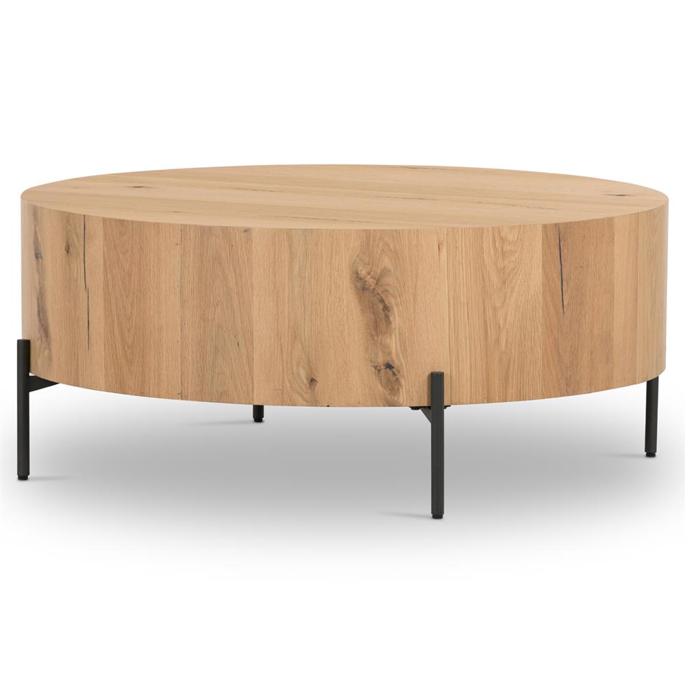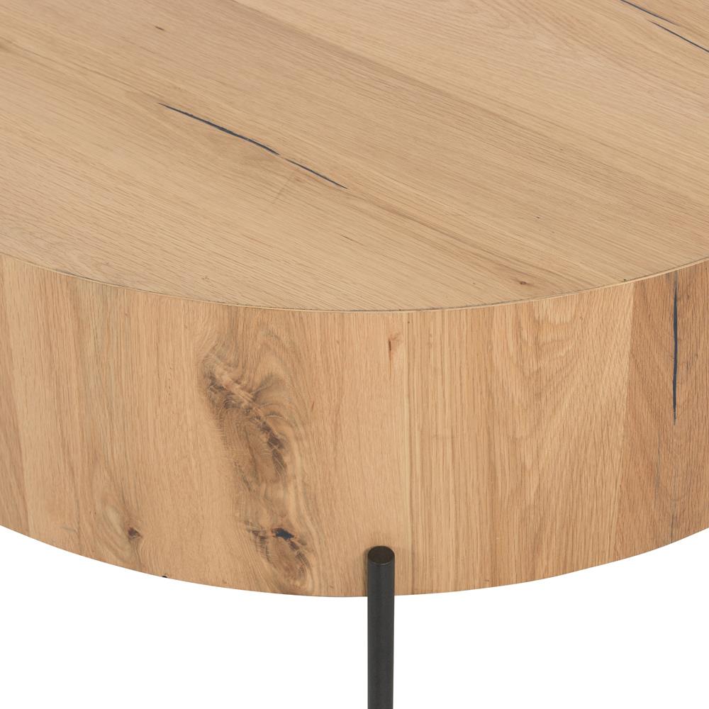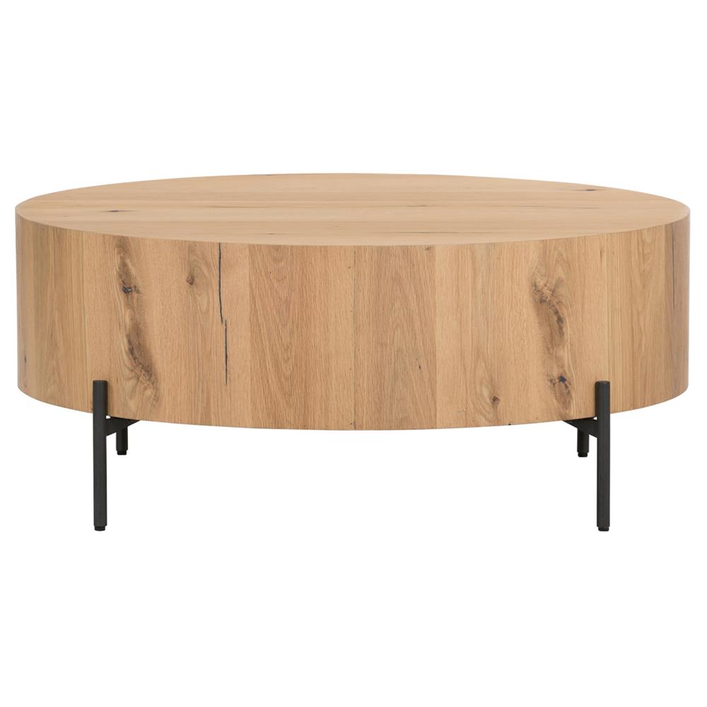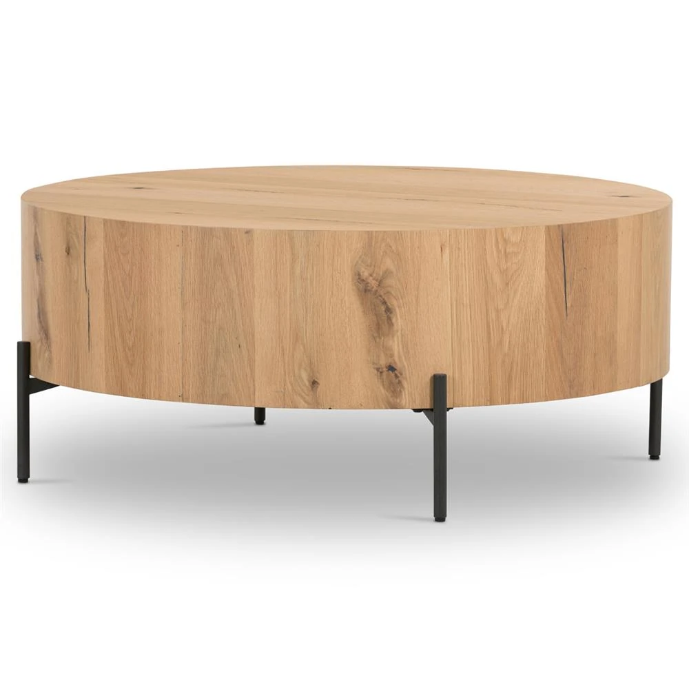 Alina Rustic Lodge Light Brown Oak Wood Black Iron Base Round Coffee Table
