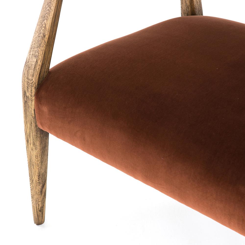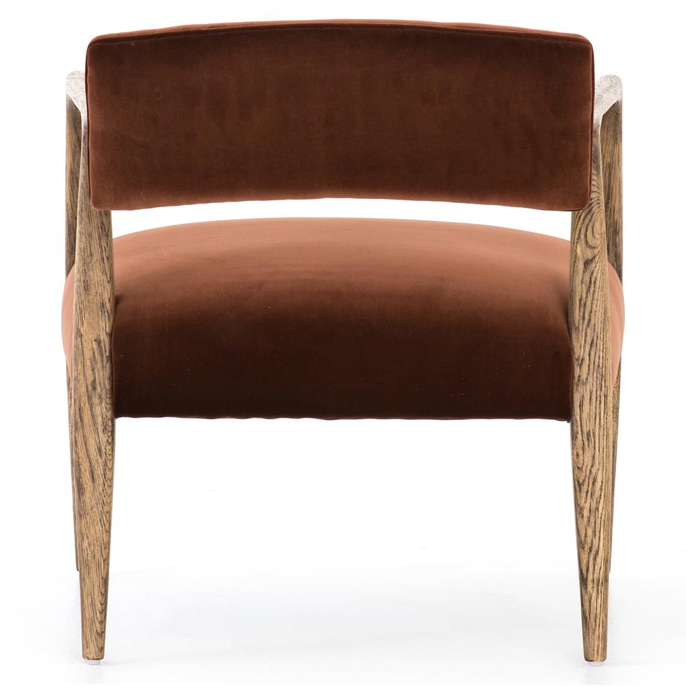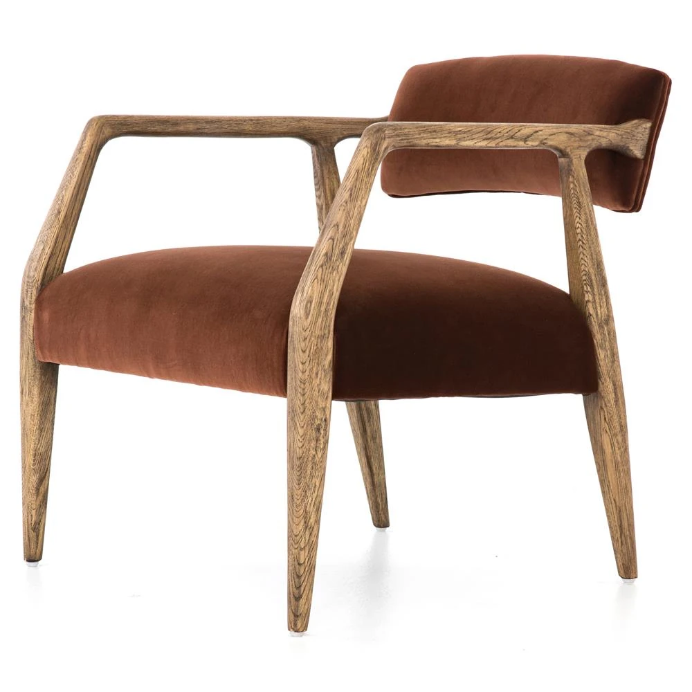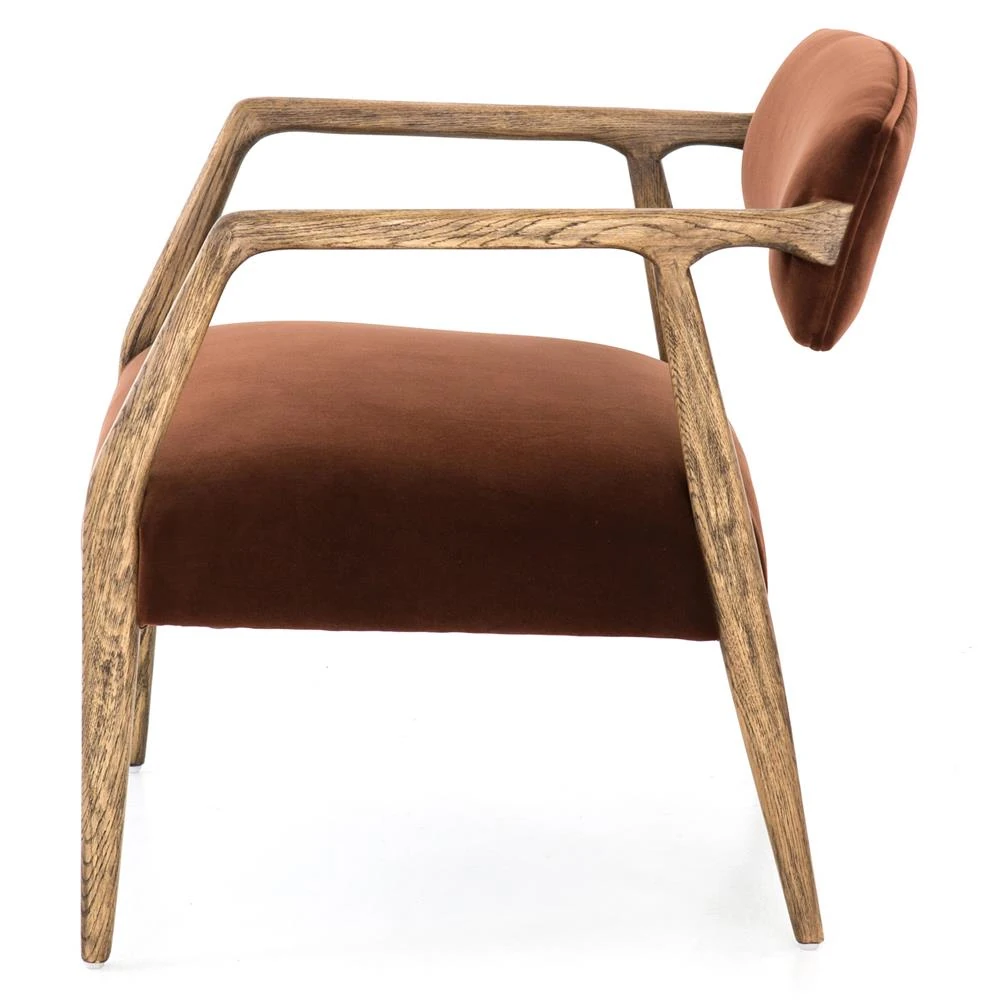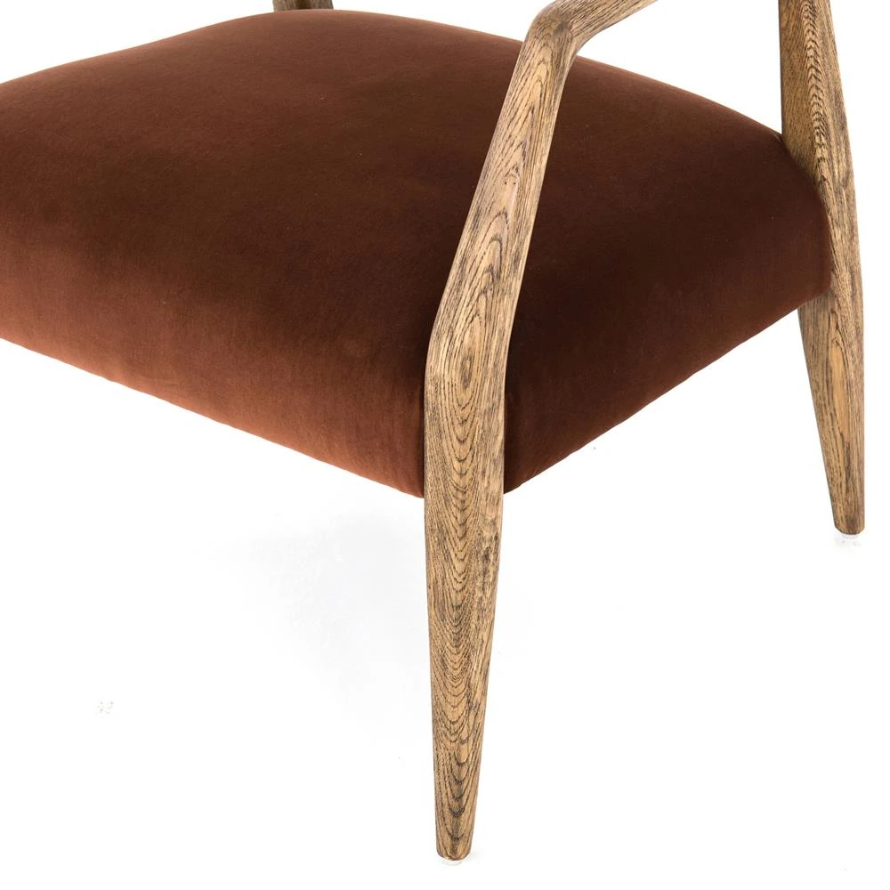 Pia Mid Century Modern Brown Upholstered Velvet Natural Wood Frame Arm Chair