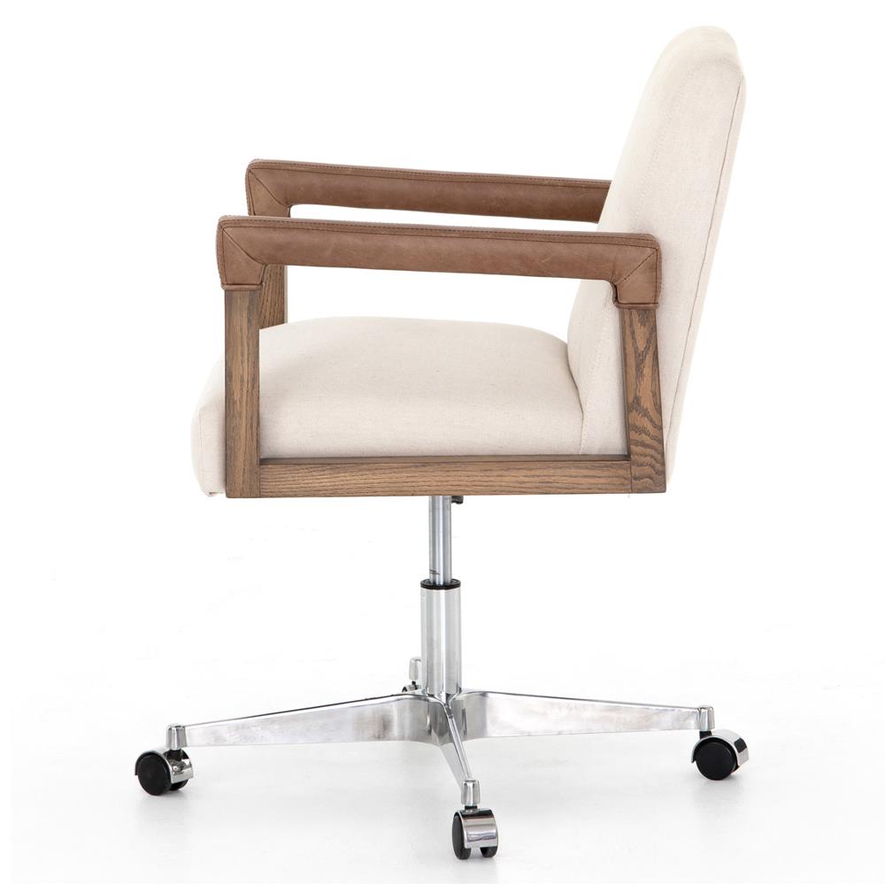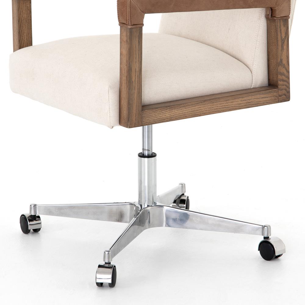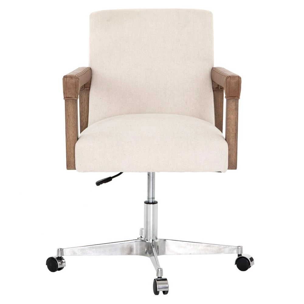 • Arslan Industrial Loft Beige Upholstered Leather Swivel Executive Office Chair|Kathy Kuo Home