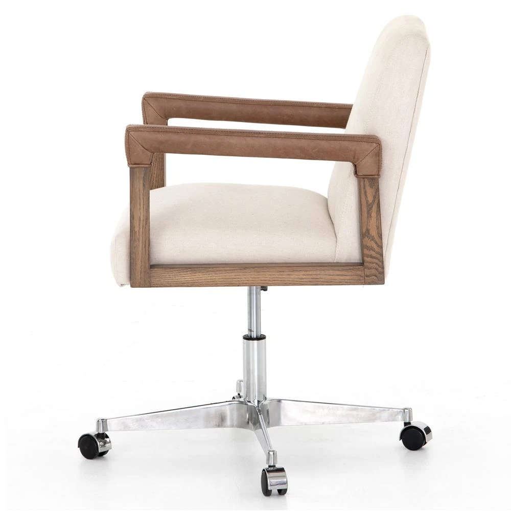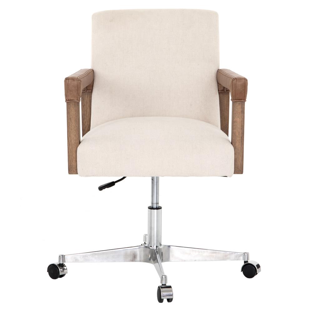 Jolie Rustic Cream Upholstered Brown Wood Leather Arms Steel Base Office Chair