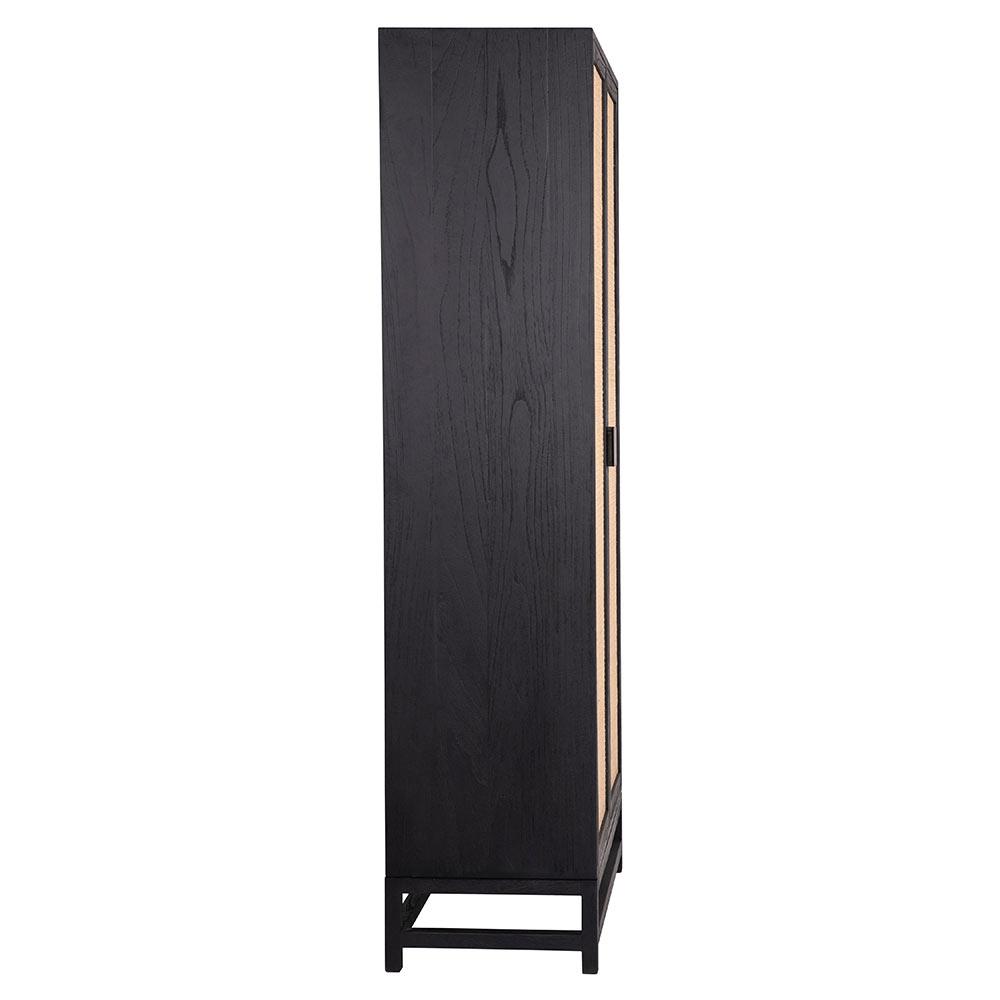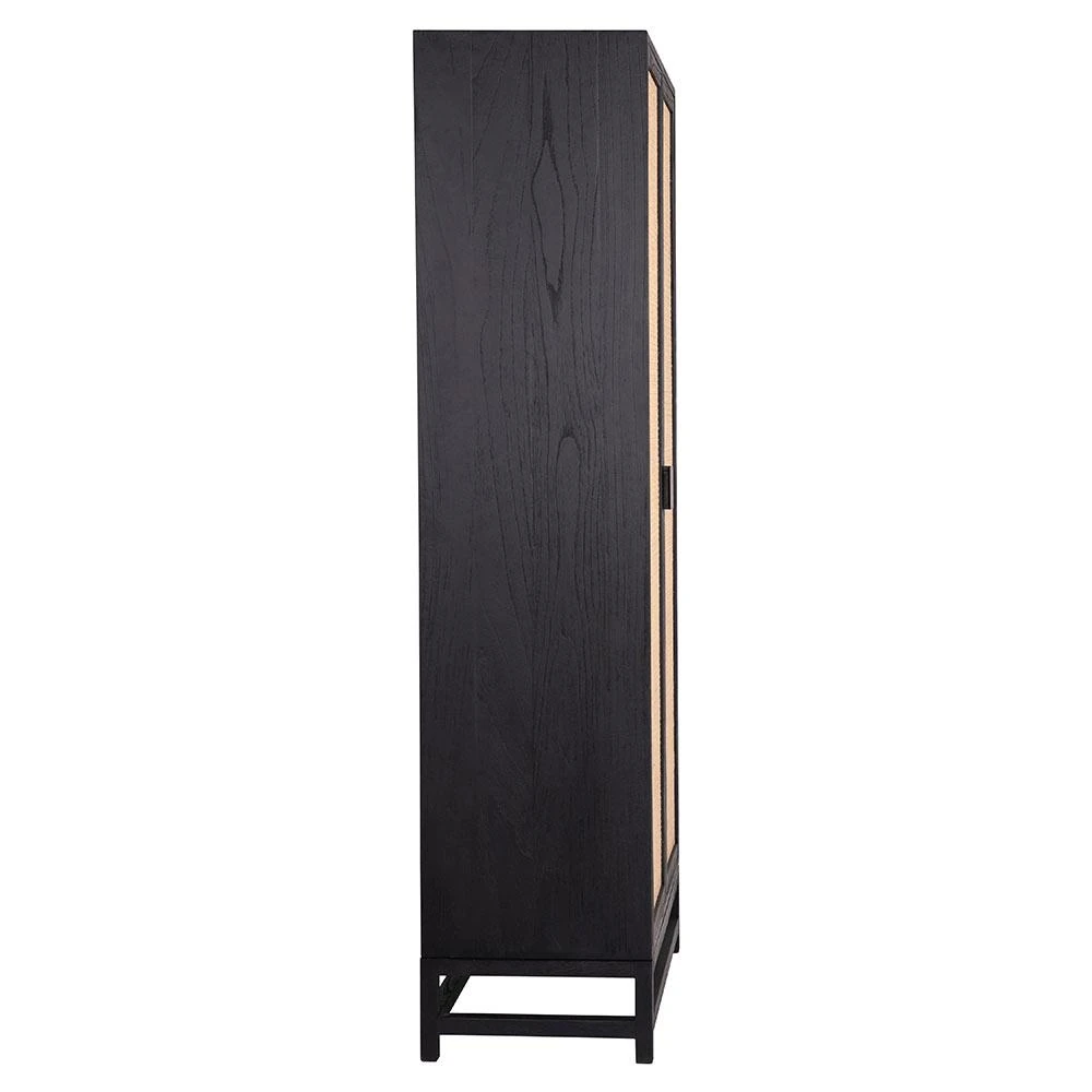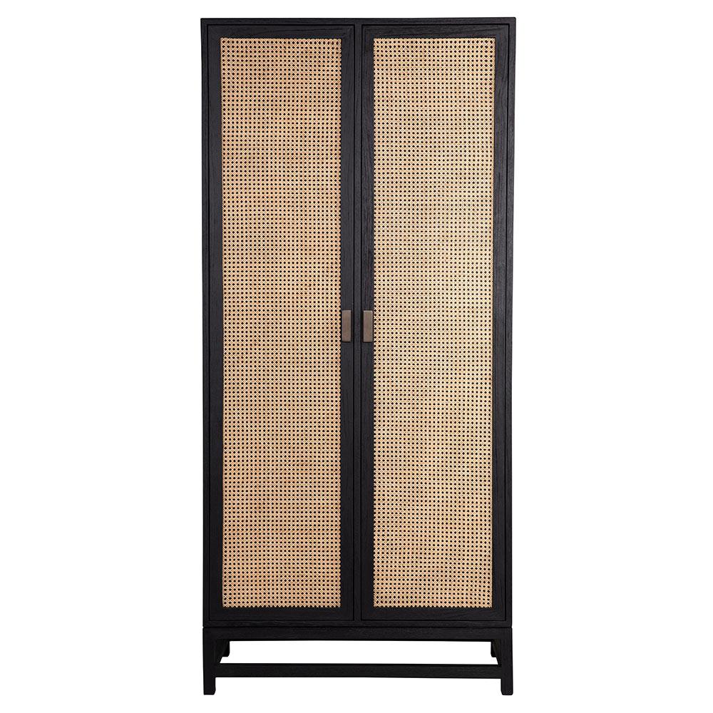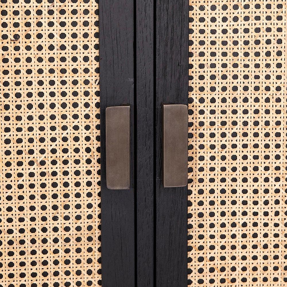 Robin Coastal Beach Black Wood Natural Woven Rattan 2 Door Armoire