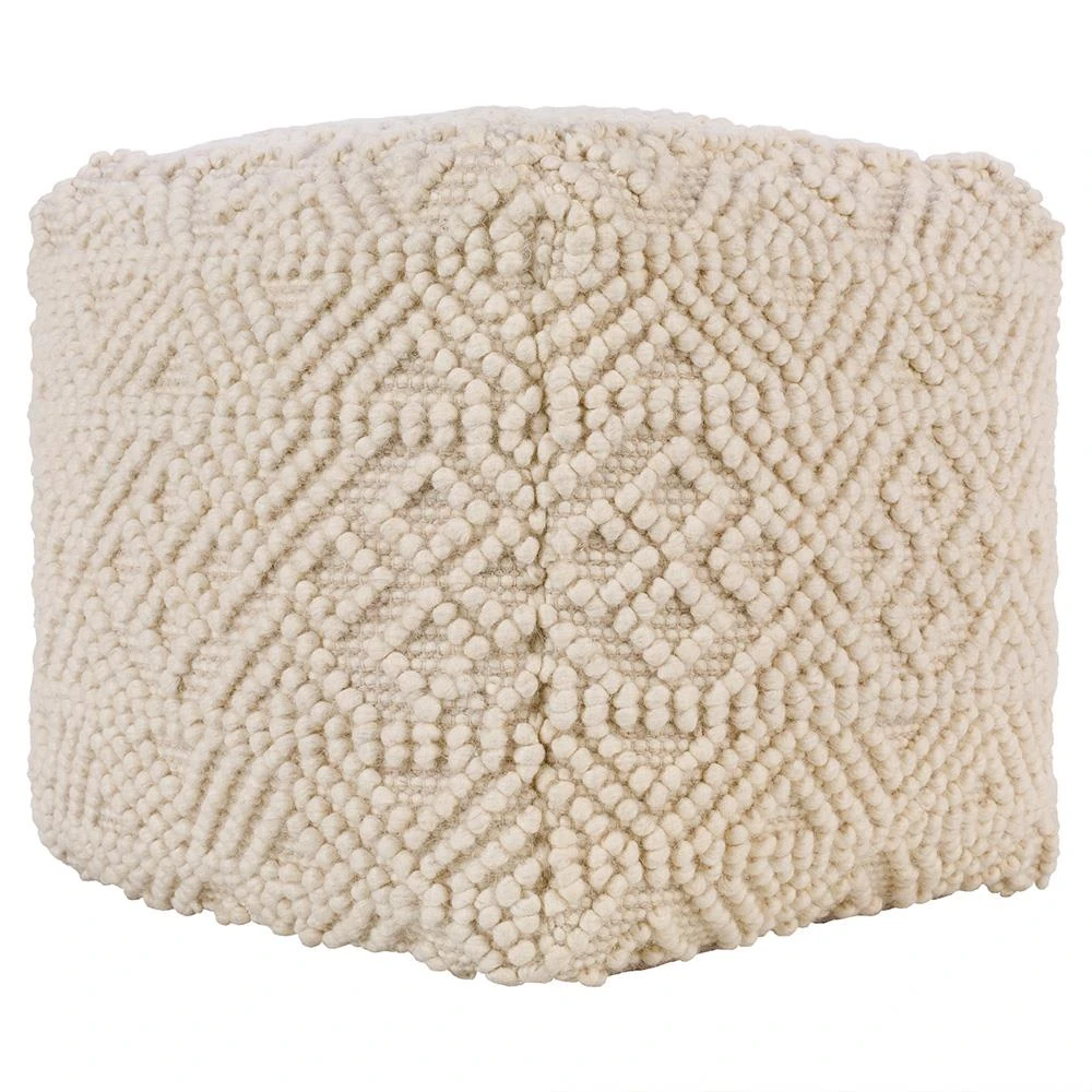 • Ezekiel Modern Classic Cream Round Pouf|Kathy Kuo Home