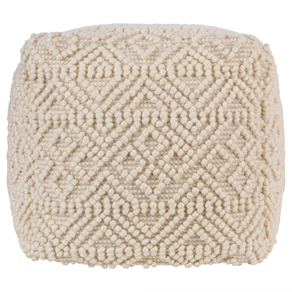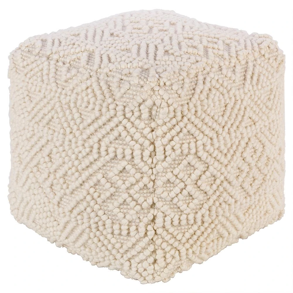 Hallie Coastal Beach Cream Cotton Textured Square Pouf