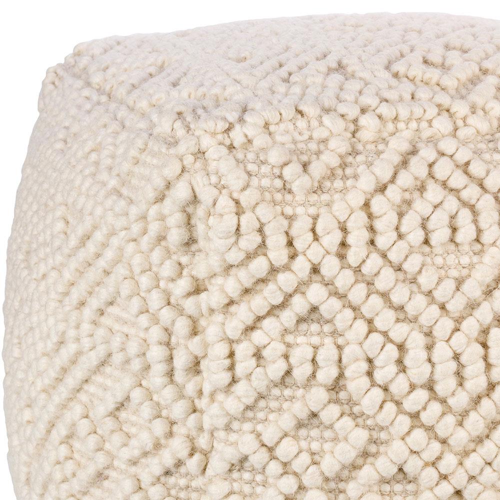 • Corazon Coastal Beach Grey Wool Basket Weave Square Pouf|Kathy Kuo Home