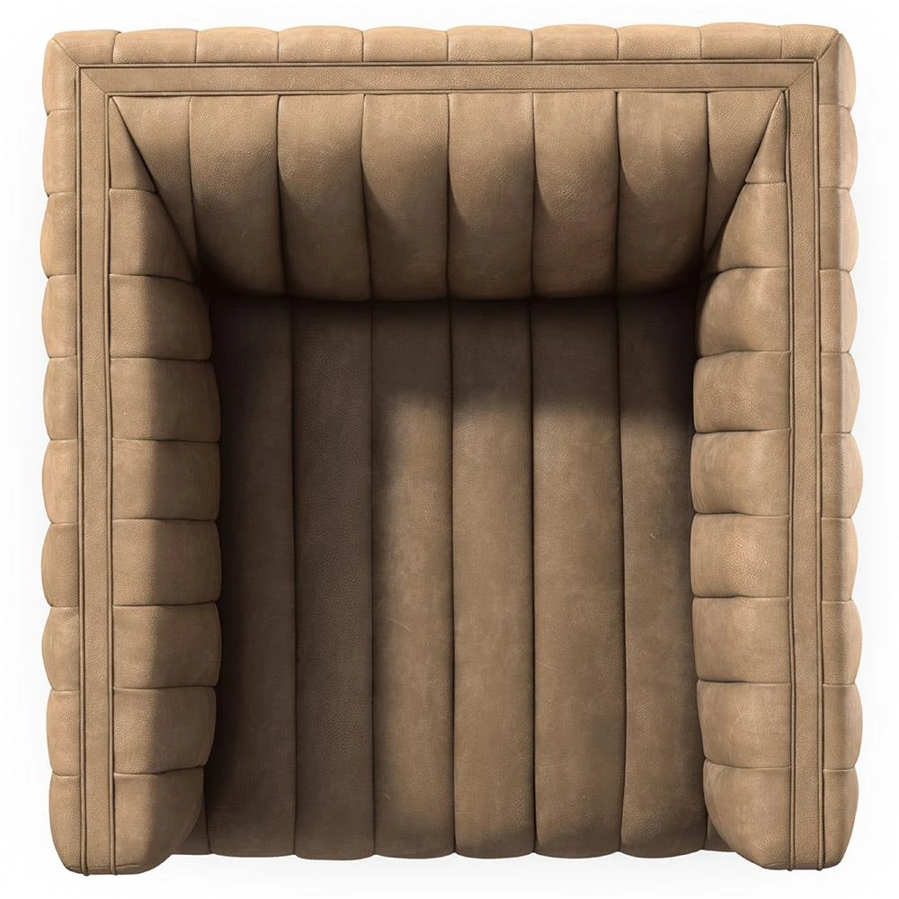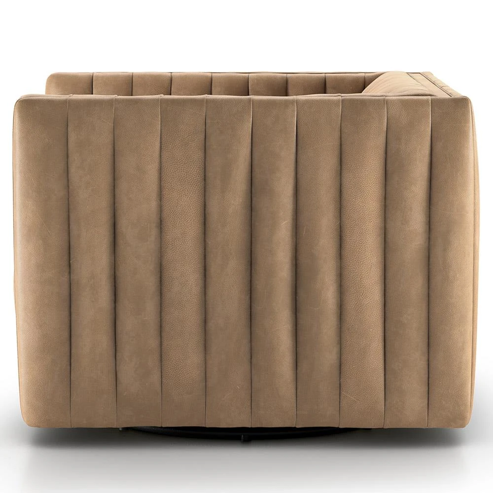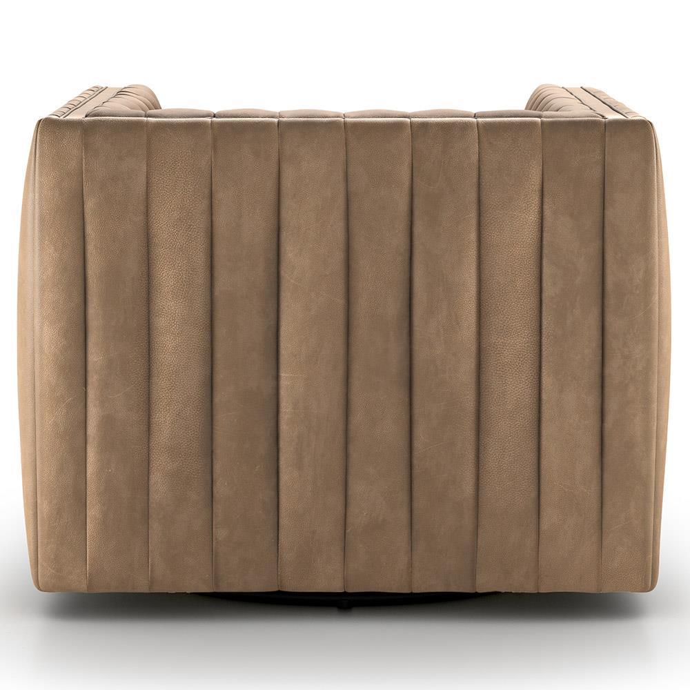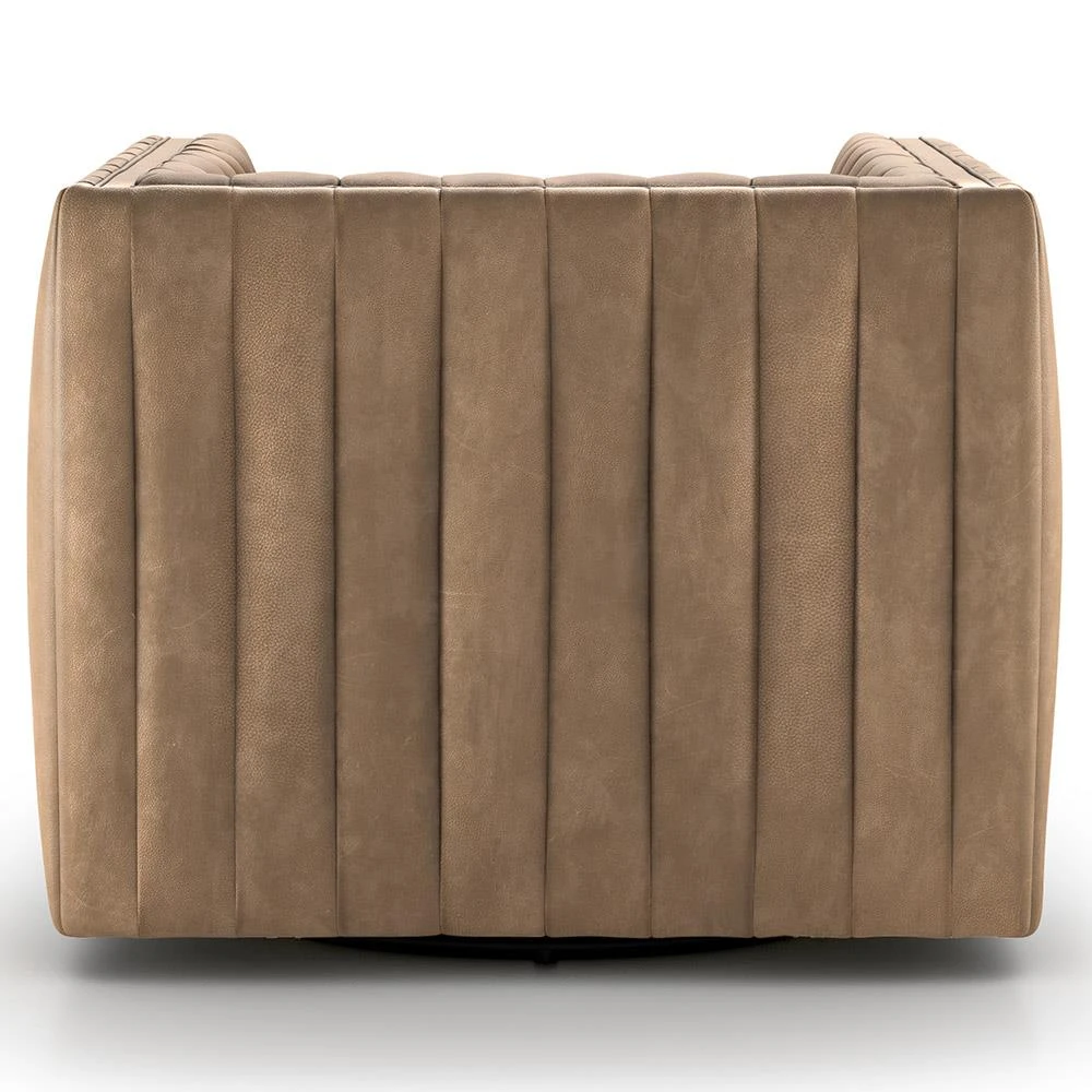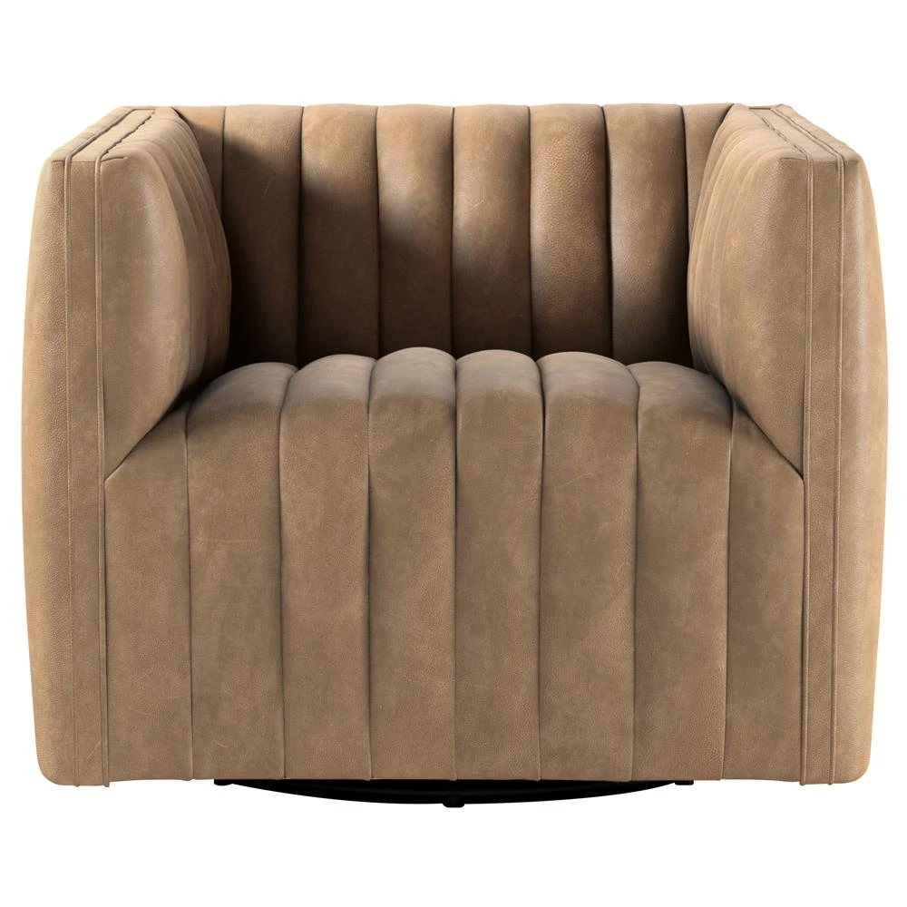 Leo Mid Century Modern Beige Upholstered Leather Swivel Tufted Occasional Chair