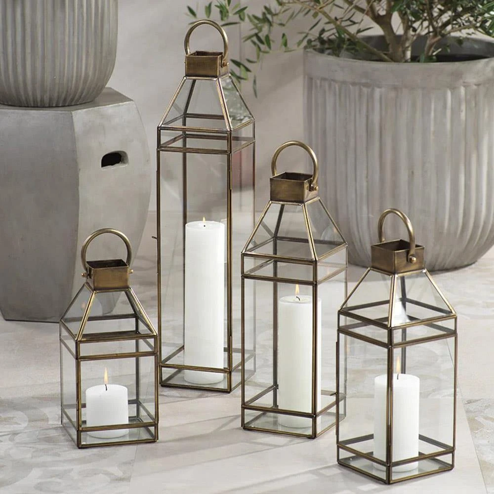 Trisha Mid Century Clear Glass Antique Brass Frame Lantern Candleholder - Small