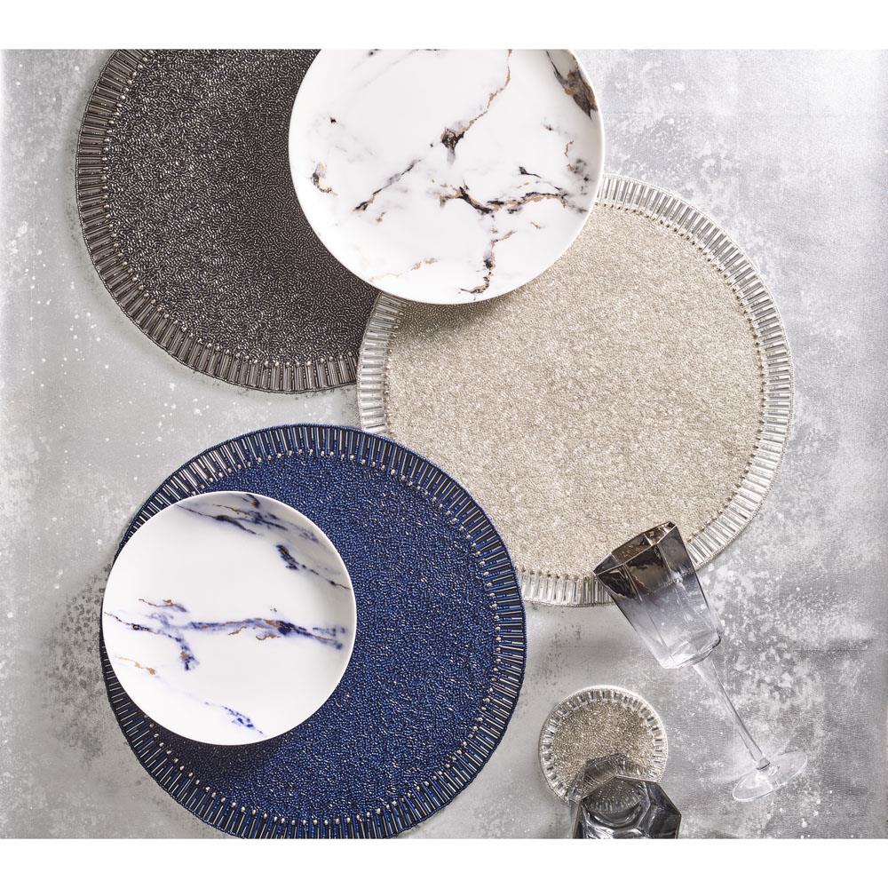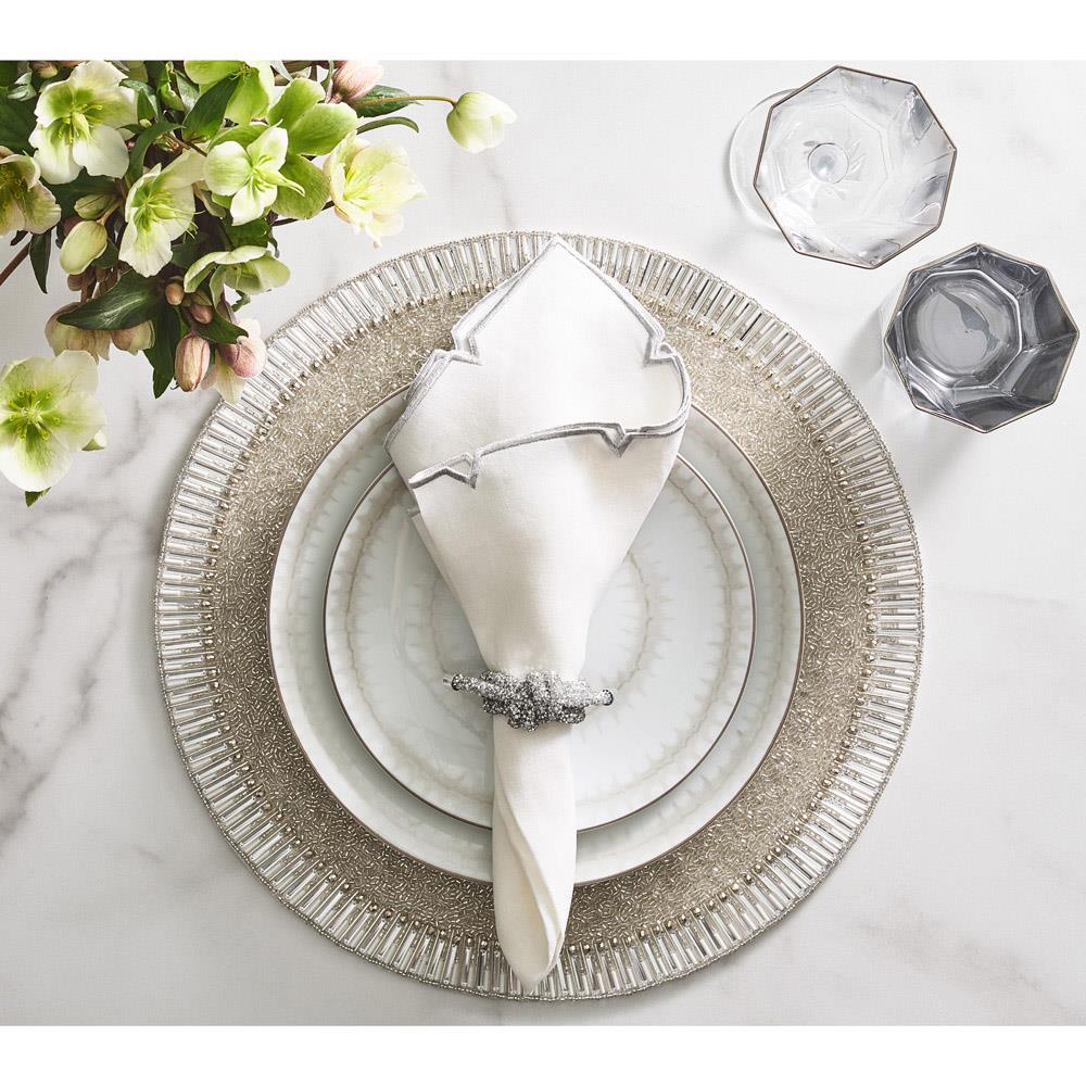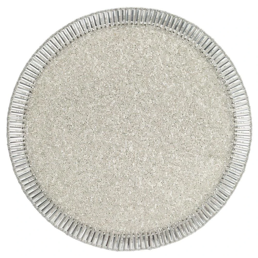 Bevel Hollywood Regency Silver Glass Beaded Placemat - Set of 4