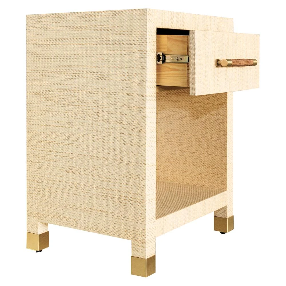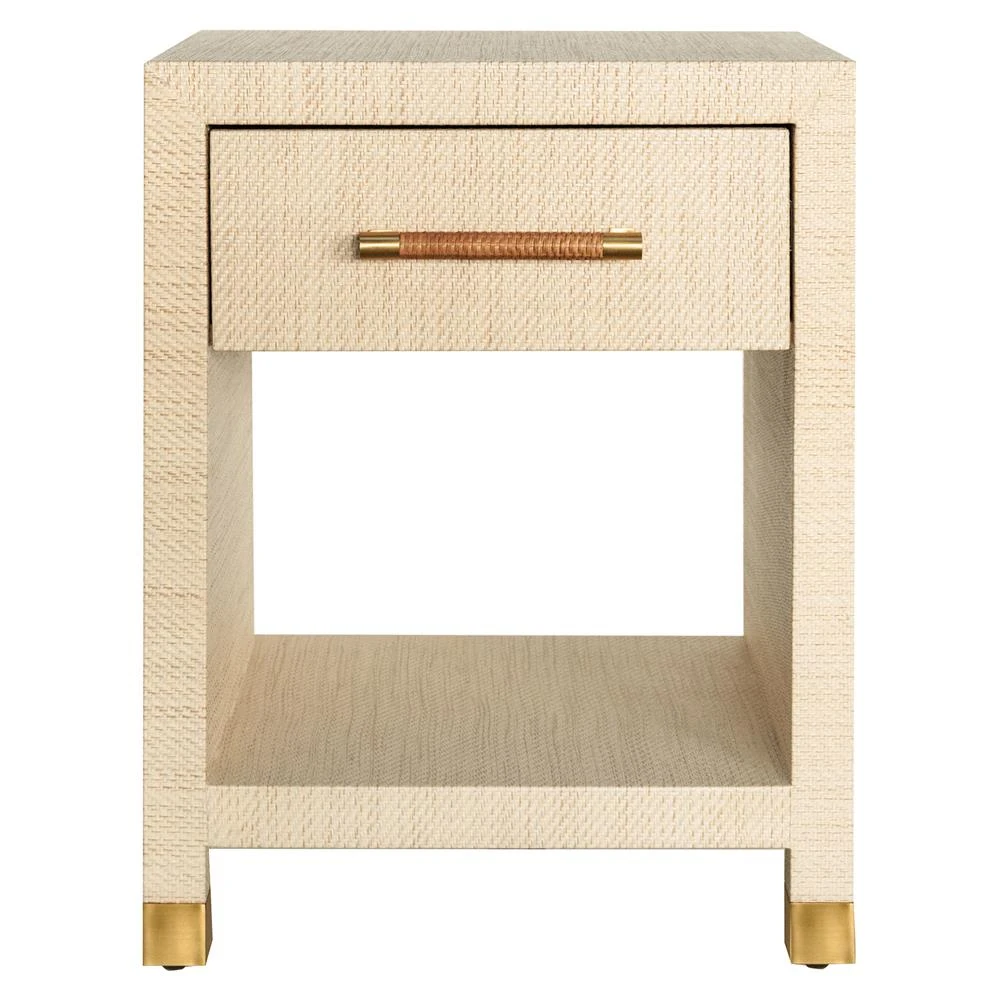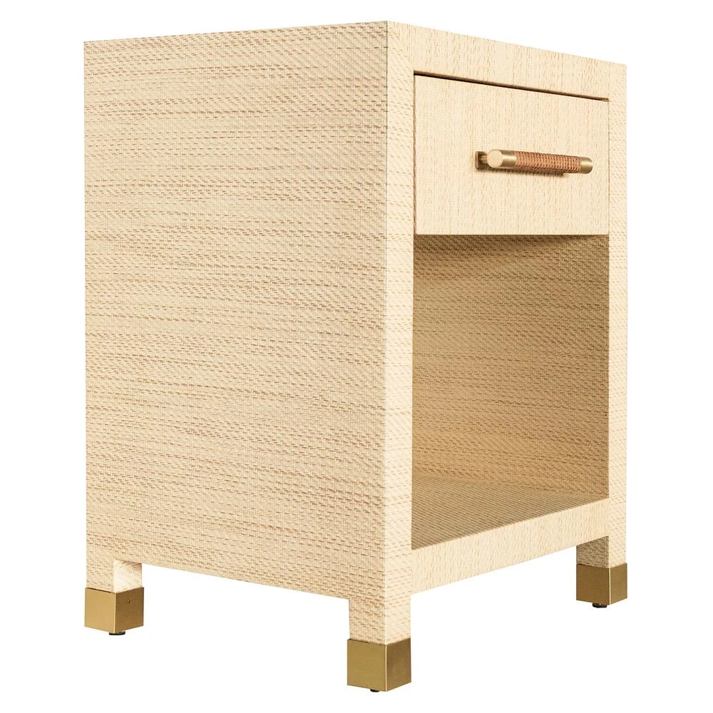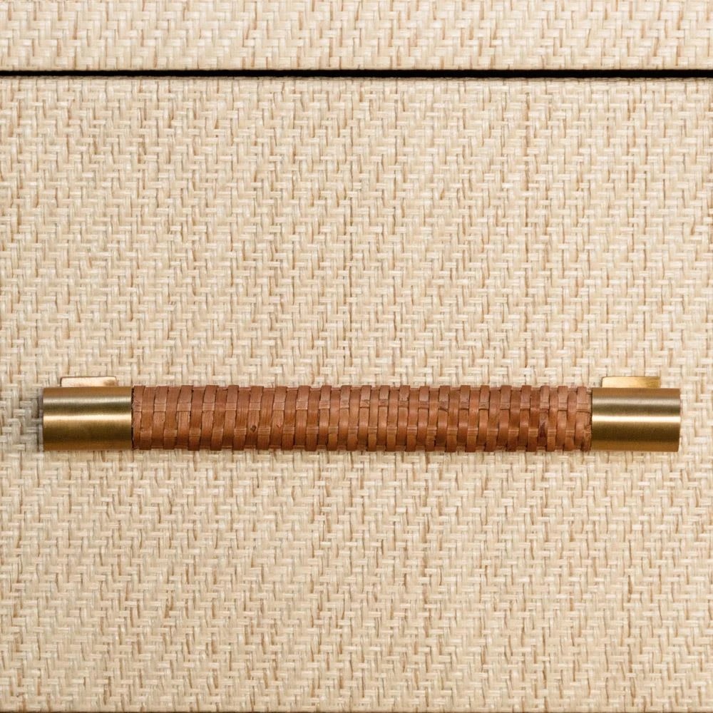 Worlds Away Pelham Natural Grasscloth Rattan Handle Rectangular Side Table