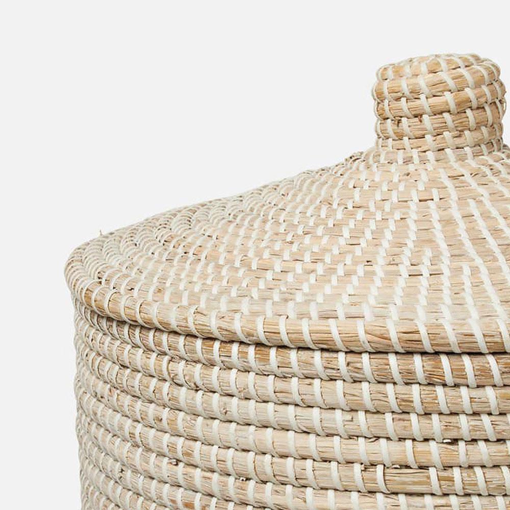 • Pigeon and Poodle Roslyn White Woven Grey Seagrass Tall Floor Basket|Kathy Kuo Home