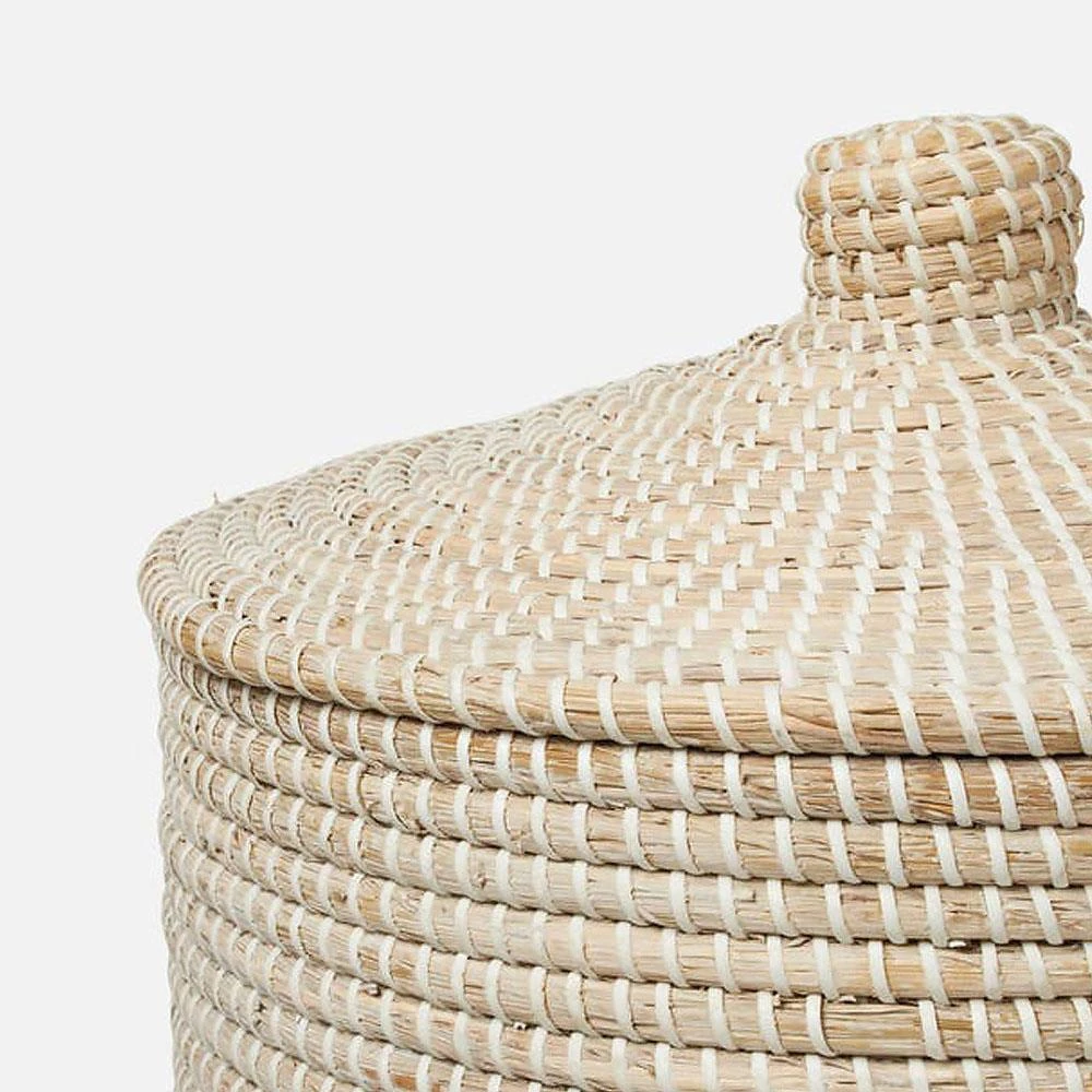 • Pigeon and Poodle Roslyn Coastal Beach Whitewashed Seagrass Hamper - Small|Kathy Kuo Home