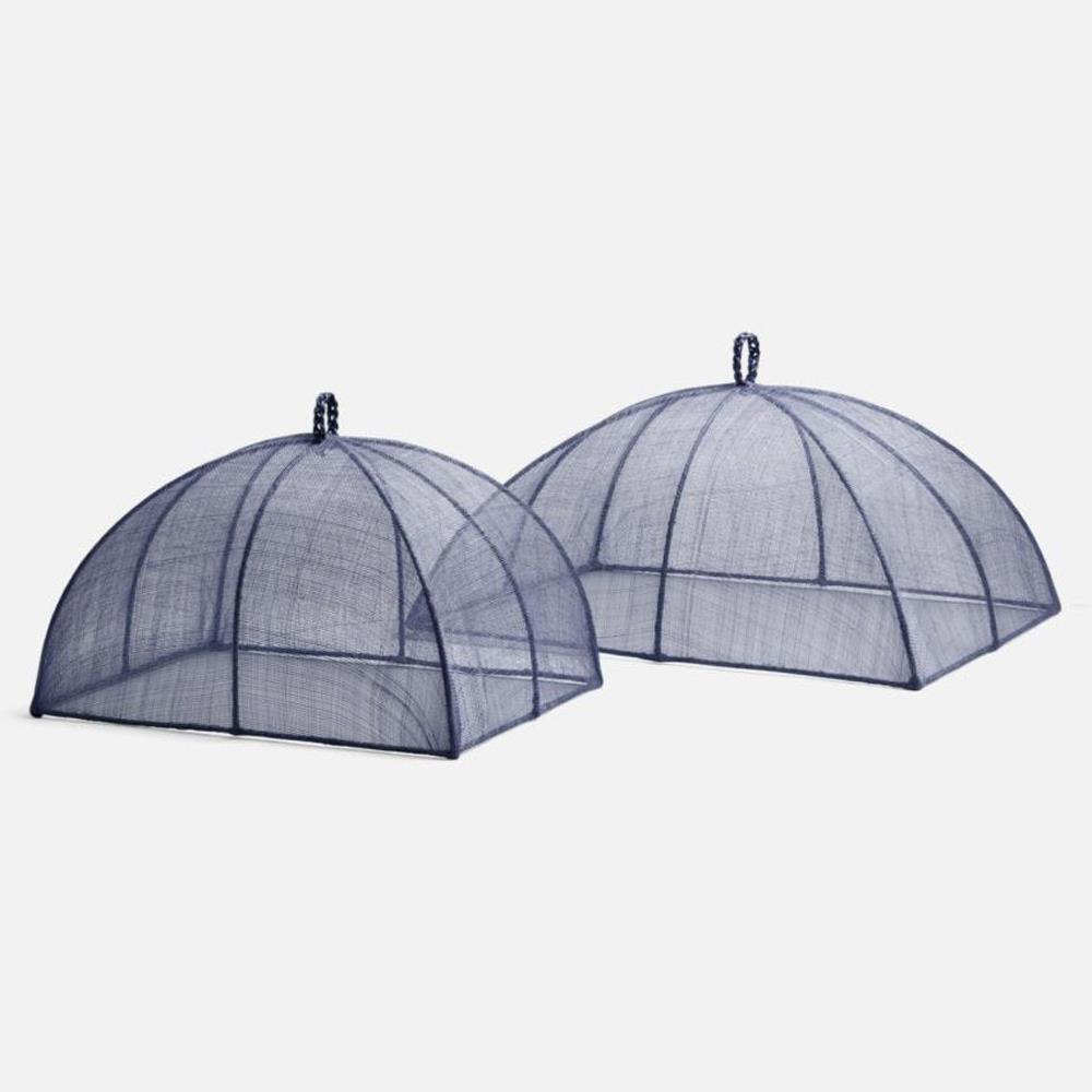 • Rachel Blue Woven Sinamay Round Serveware Food Cover - Set of 2|Kathy Kuo Home