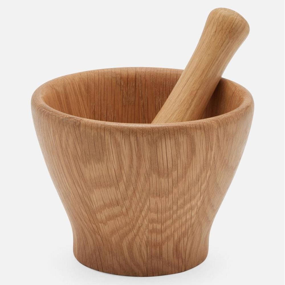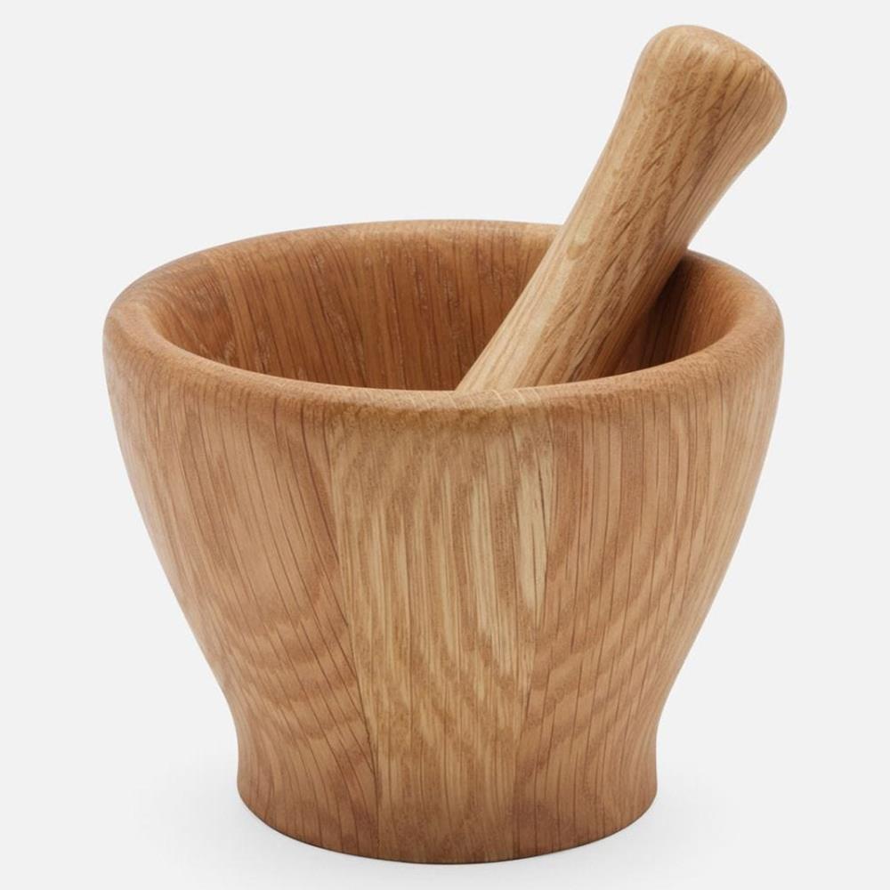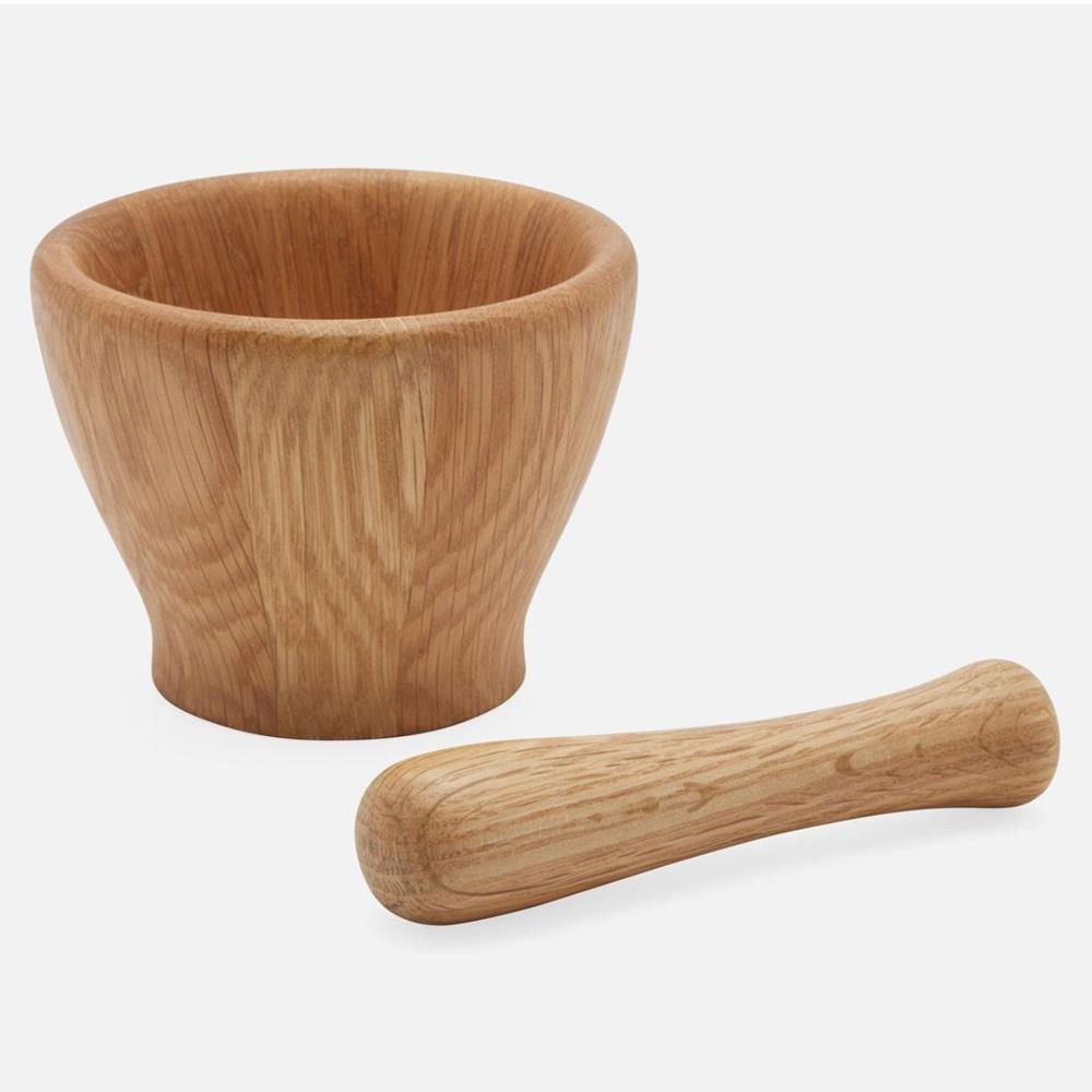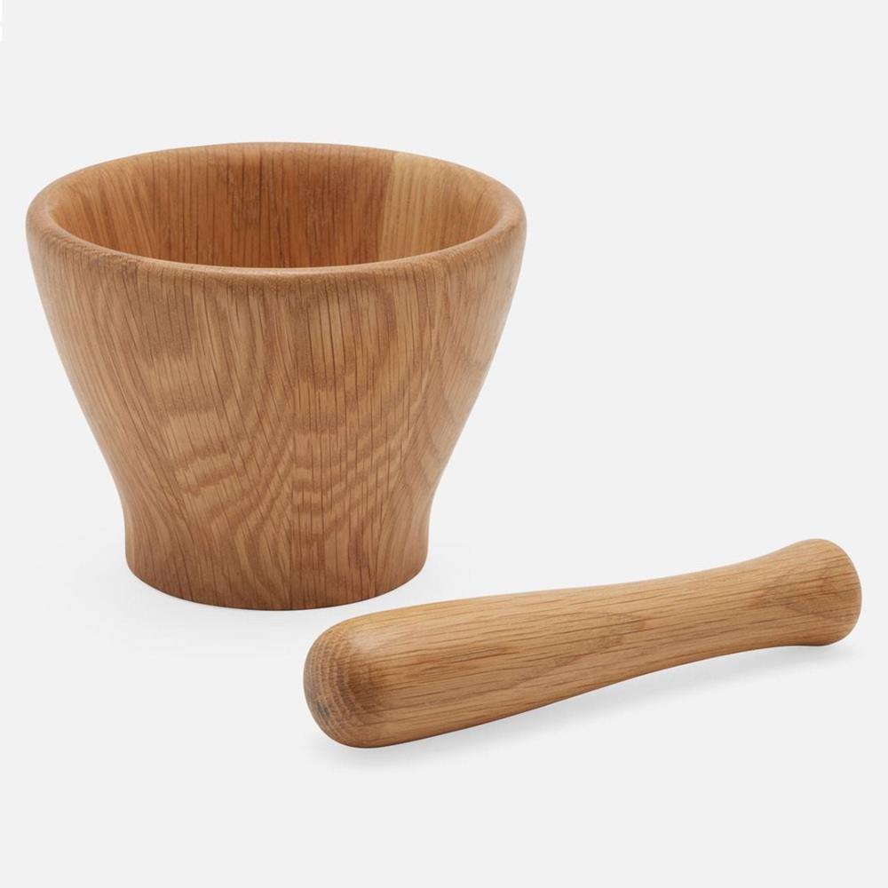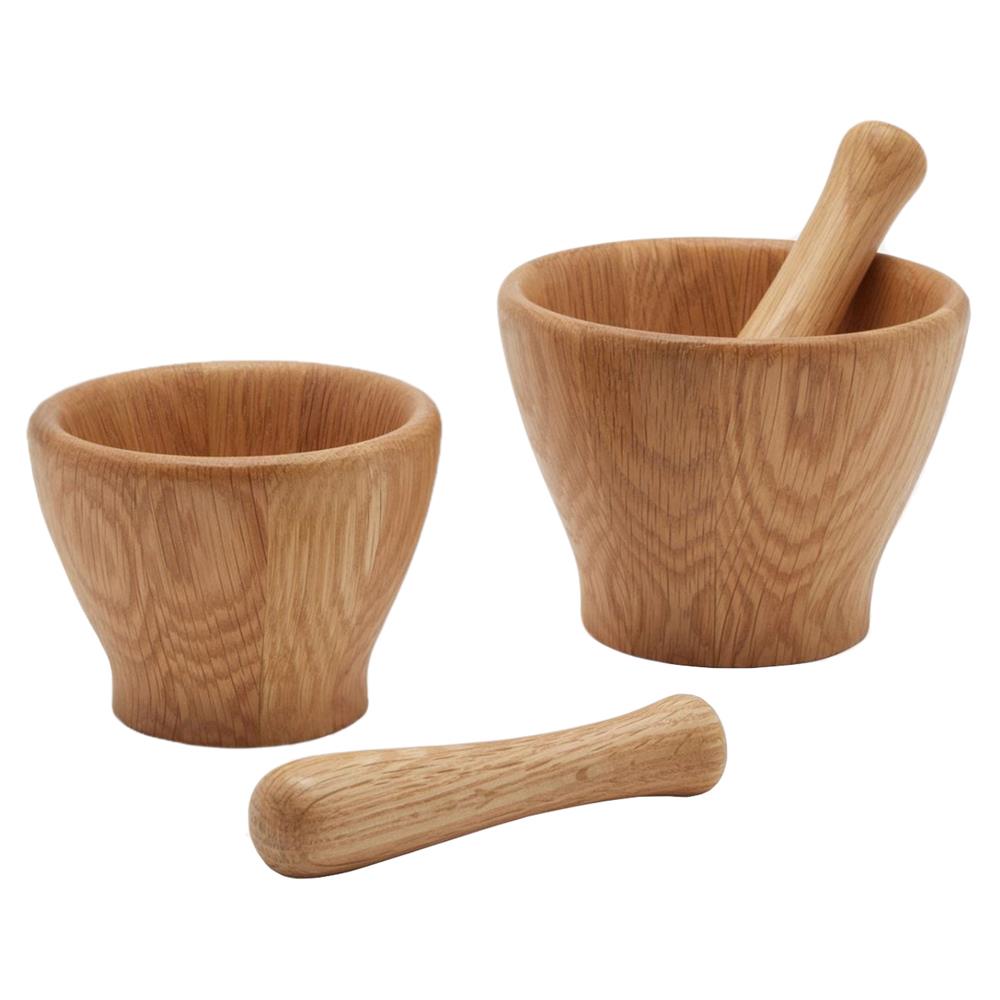 Tashi Rustic Natural Brown Oak Wood Mortar and Pestle - Set of 2