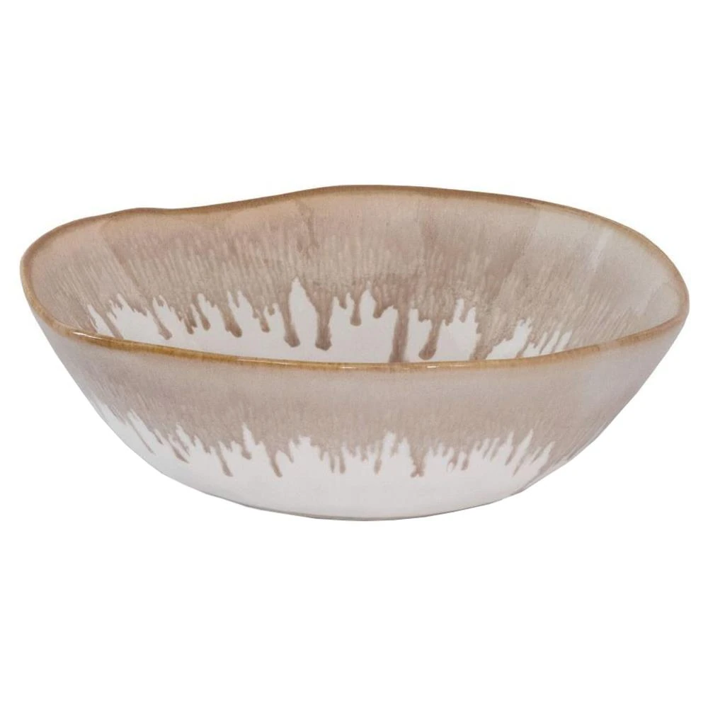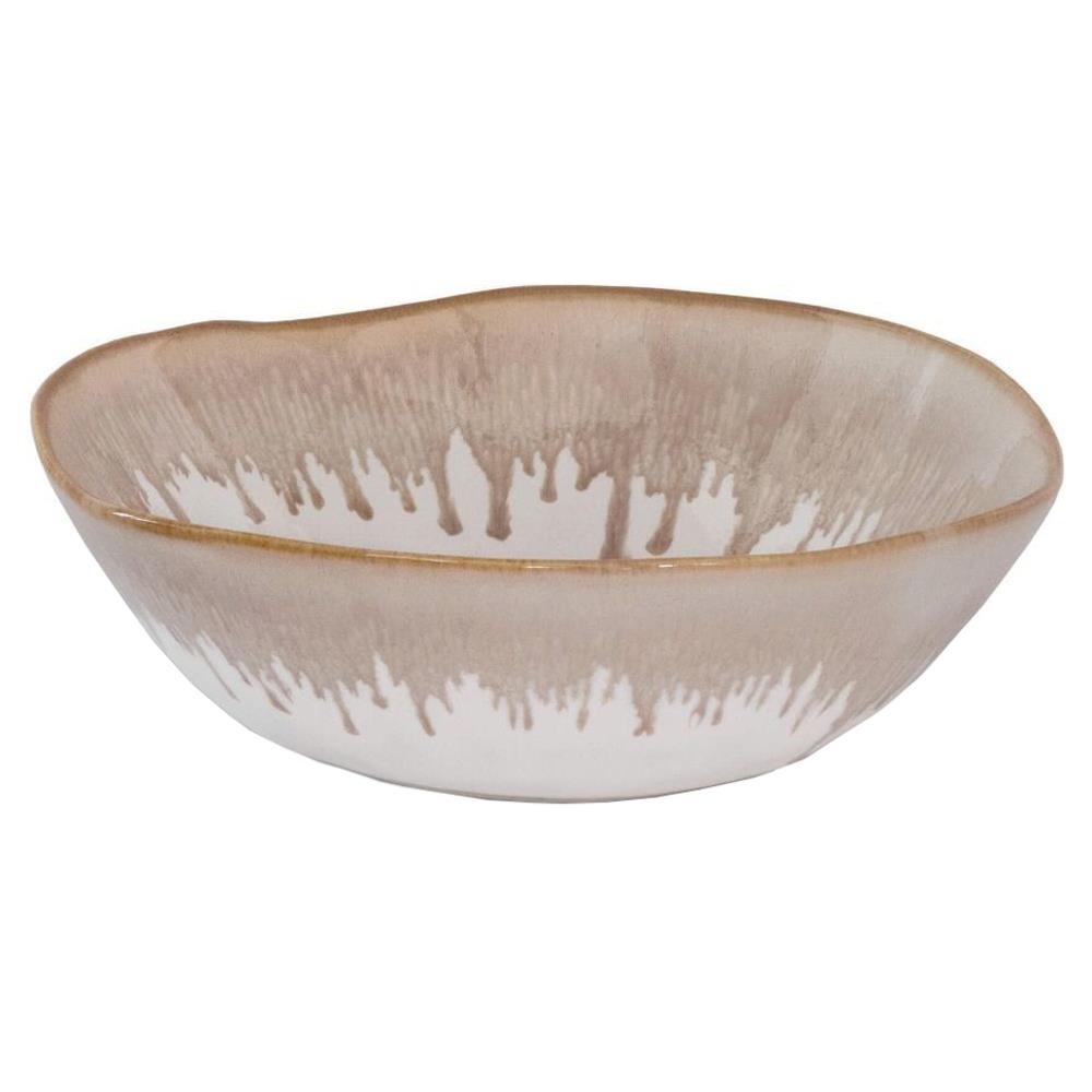 Simon Pearce Burlington Modern Beige Drip Edges White Stoneware Cereal Bowl
