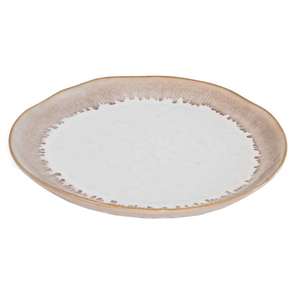 Simon Pearce Burlington Modern Beige Drip Edges White Stoneware Dinner Plate