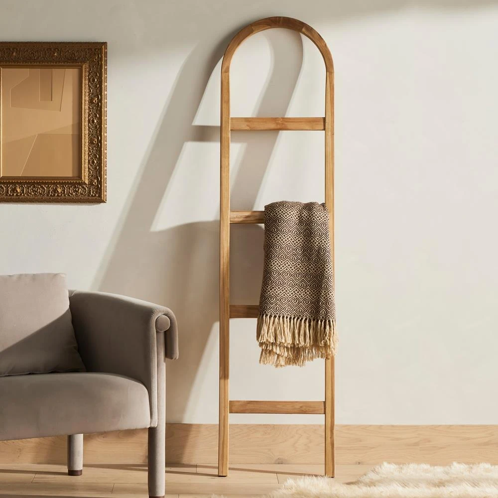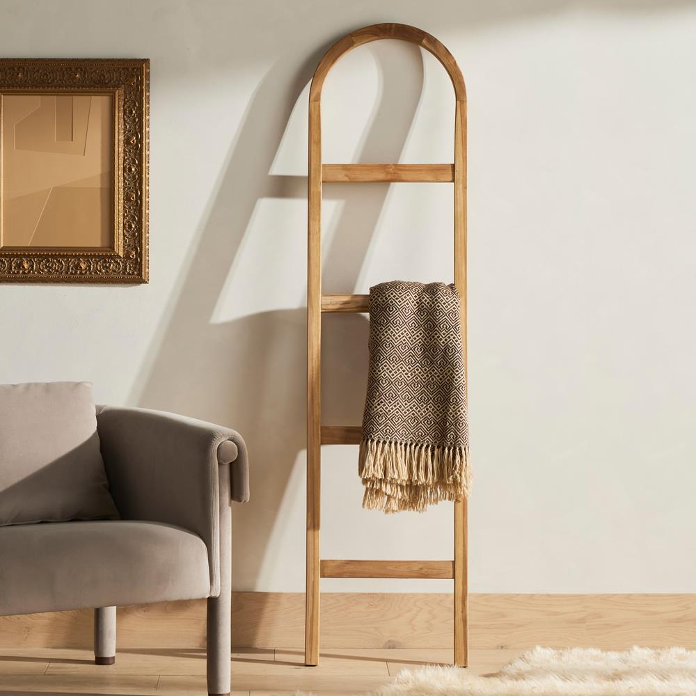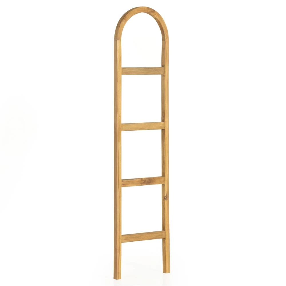 • Pigeon and Poodle Provo Coastal Beach Natural Teak Wood Leaning Towel Rack|Kathy Kuo Home