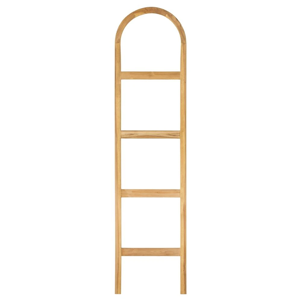 Preston Rustic Lodge Brown Teak Wood Arched Ladder Wall Shelf