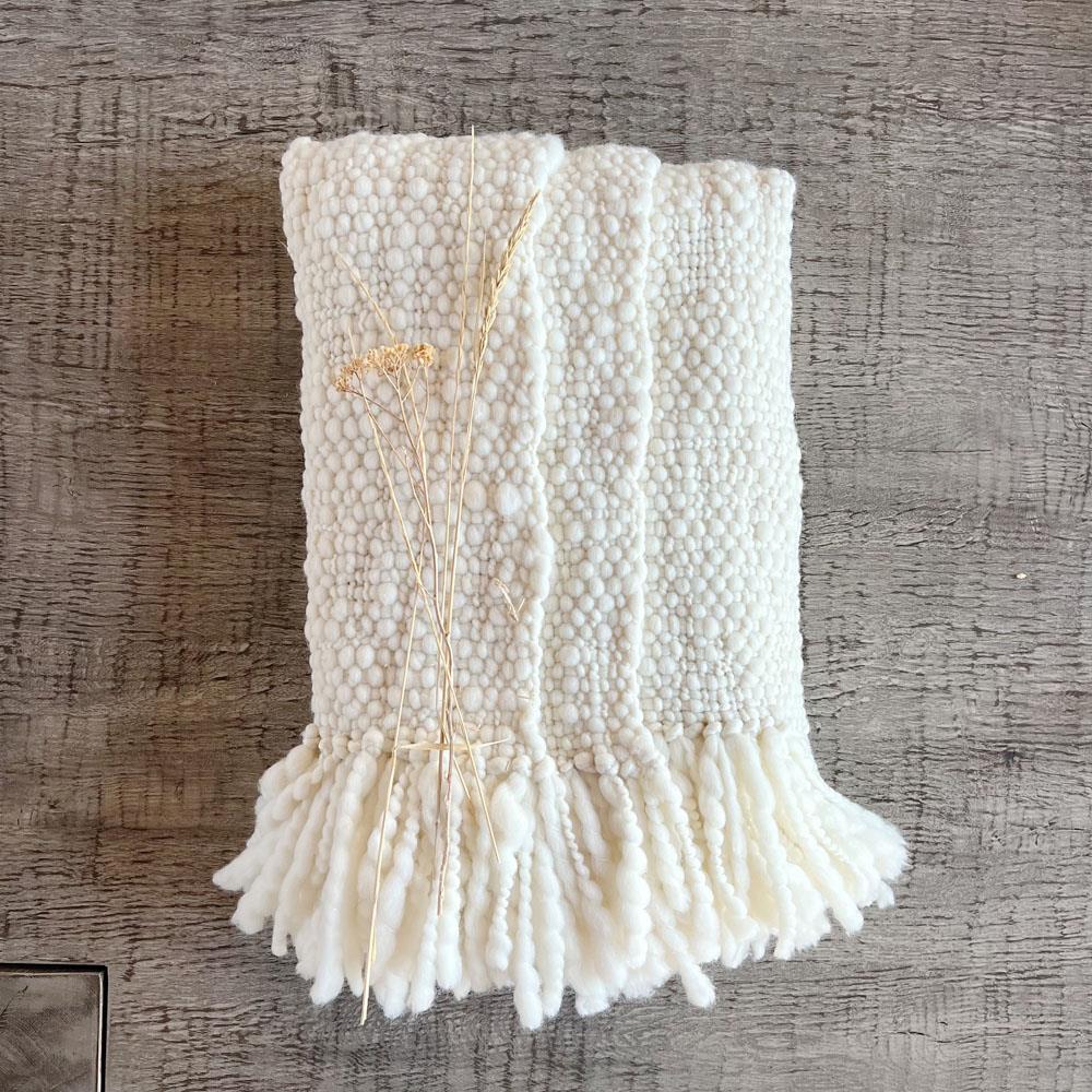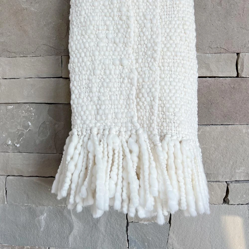 Pampa Merino Modern White Wool Handwoven Throw Blanket