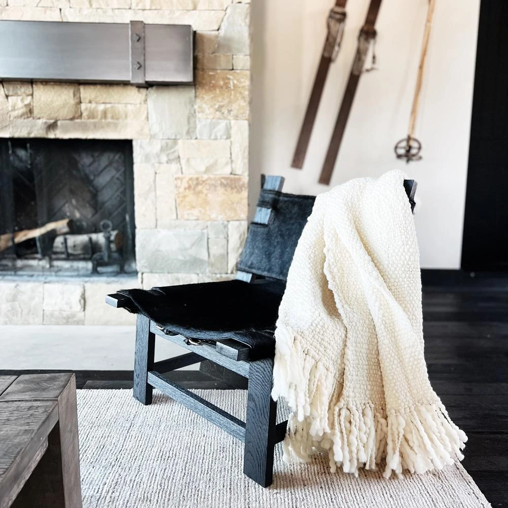 • Pampa Merino Modern White Wool Handwoven Throw Blanket|Kathy Kuo Home