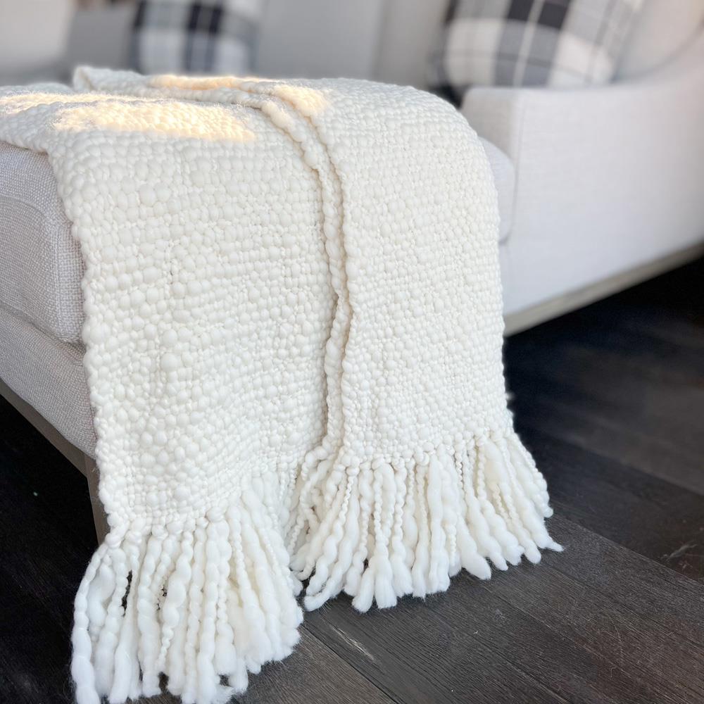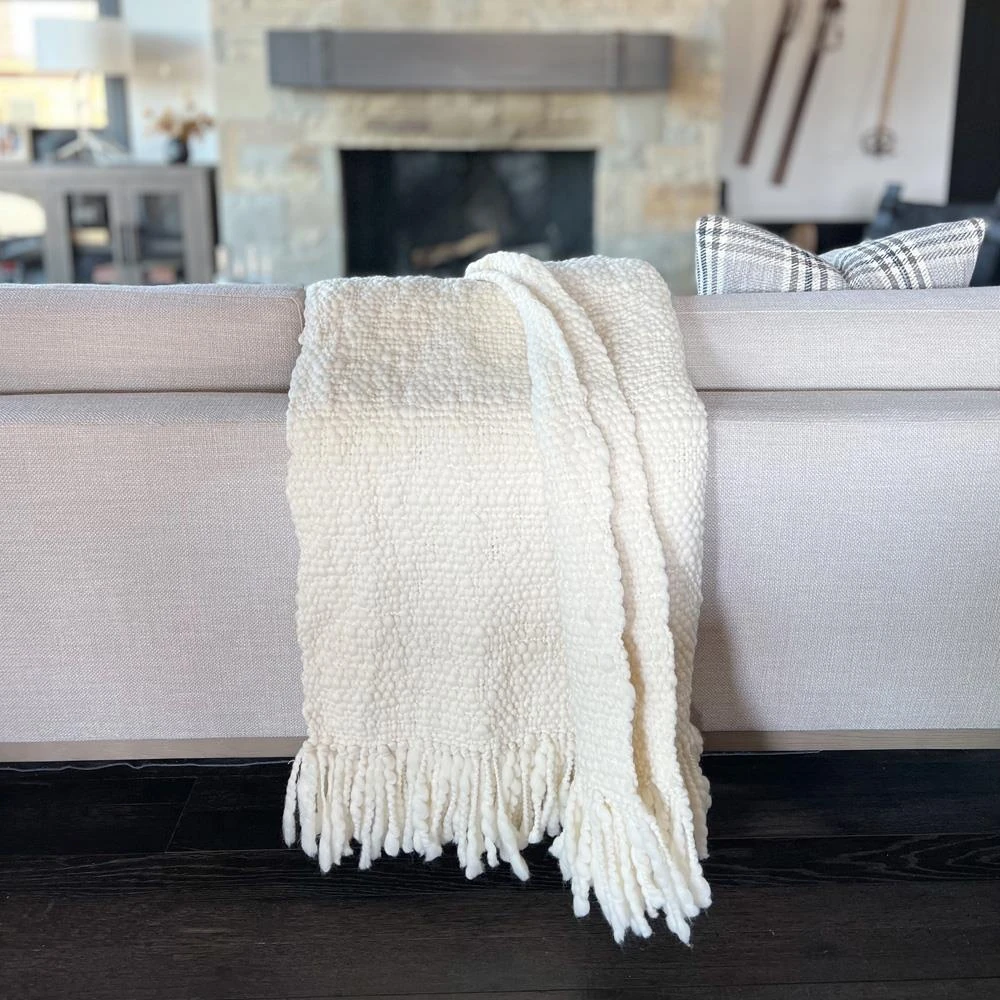 Palermo Coastal Beach Bone Wool Handwoven Throw Blanket