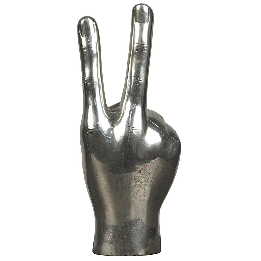 Farella Industrial Loft Distressed Silver Peace Sign Hand Sculpture