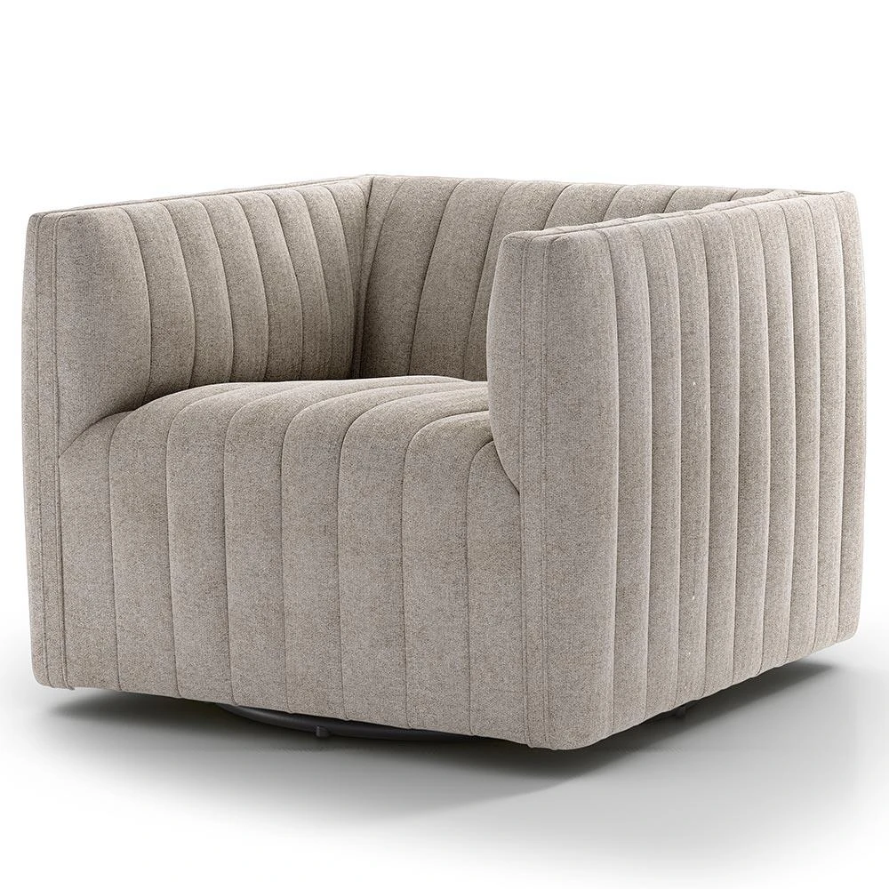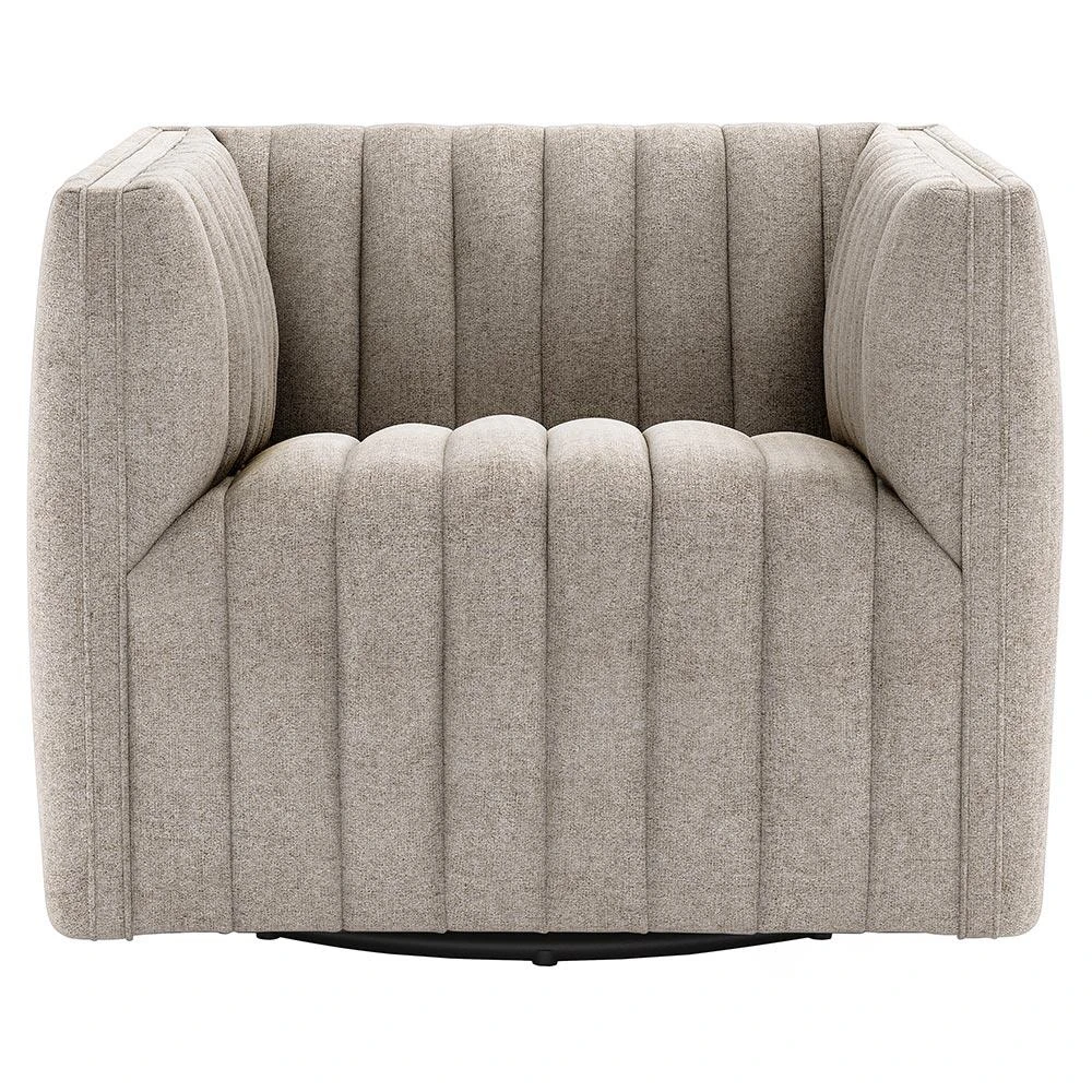 With a swivel base and elevated channel tufting, the Leo chair enlivens a classic silhouette. Its poplar plywood frame is topped with s ... more