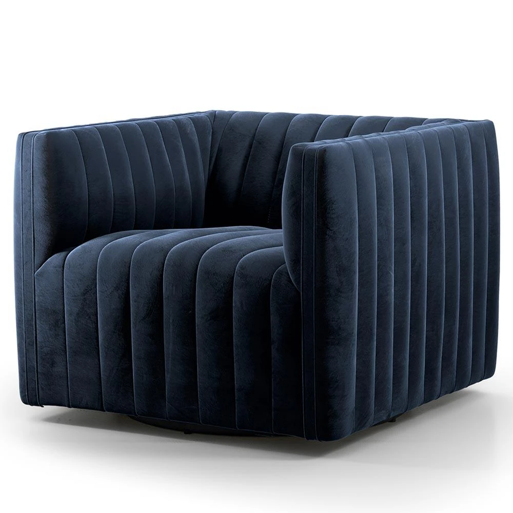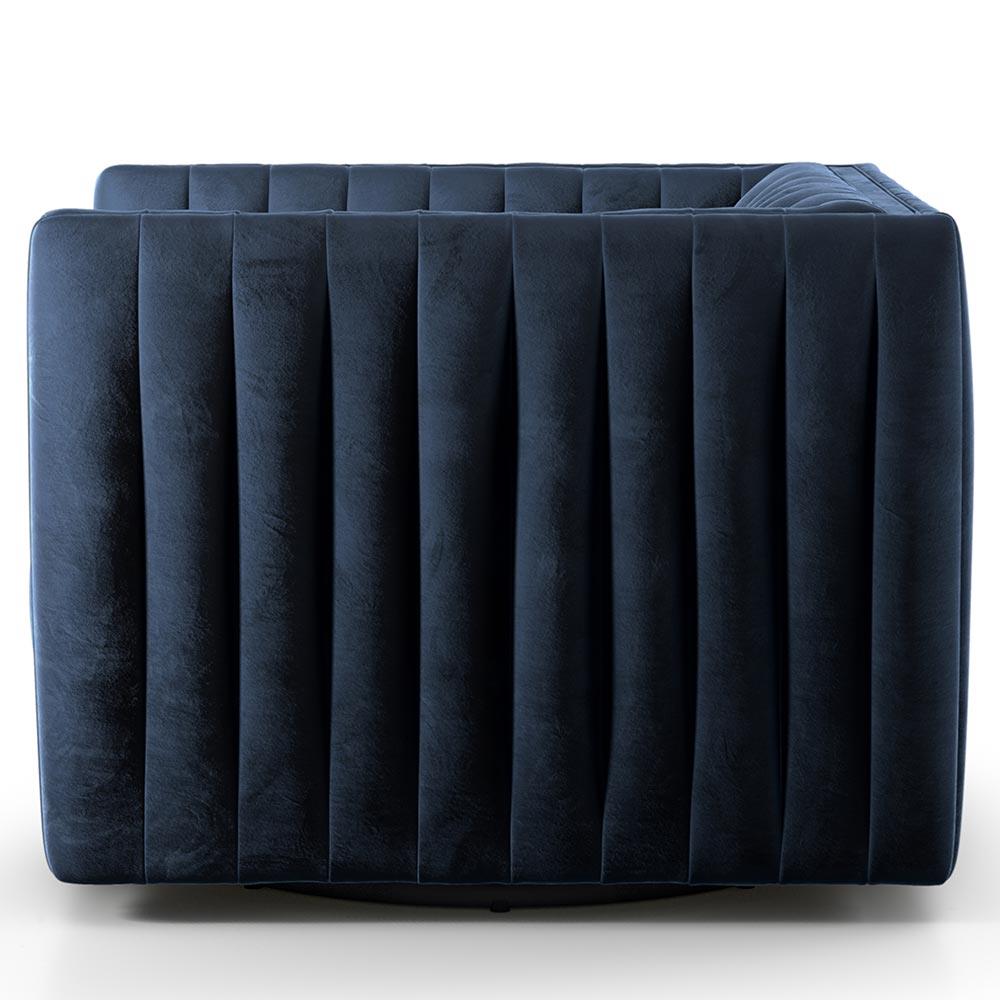 With a swivel base and elevated channel tufting, the Leo chair enlivens a classic silhouette. Its poplar plywood frame is topped with v ... more