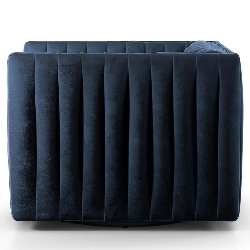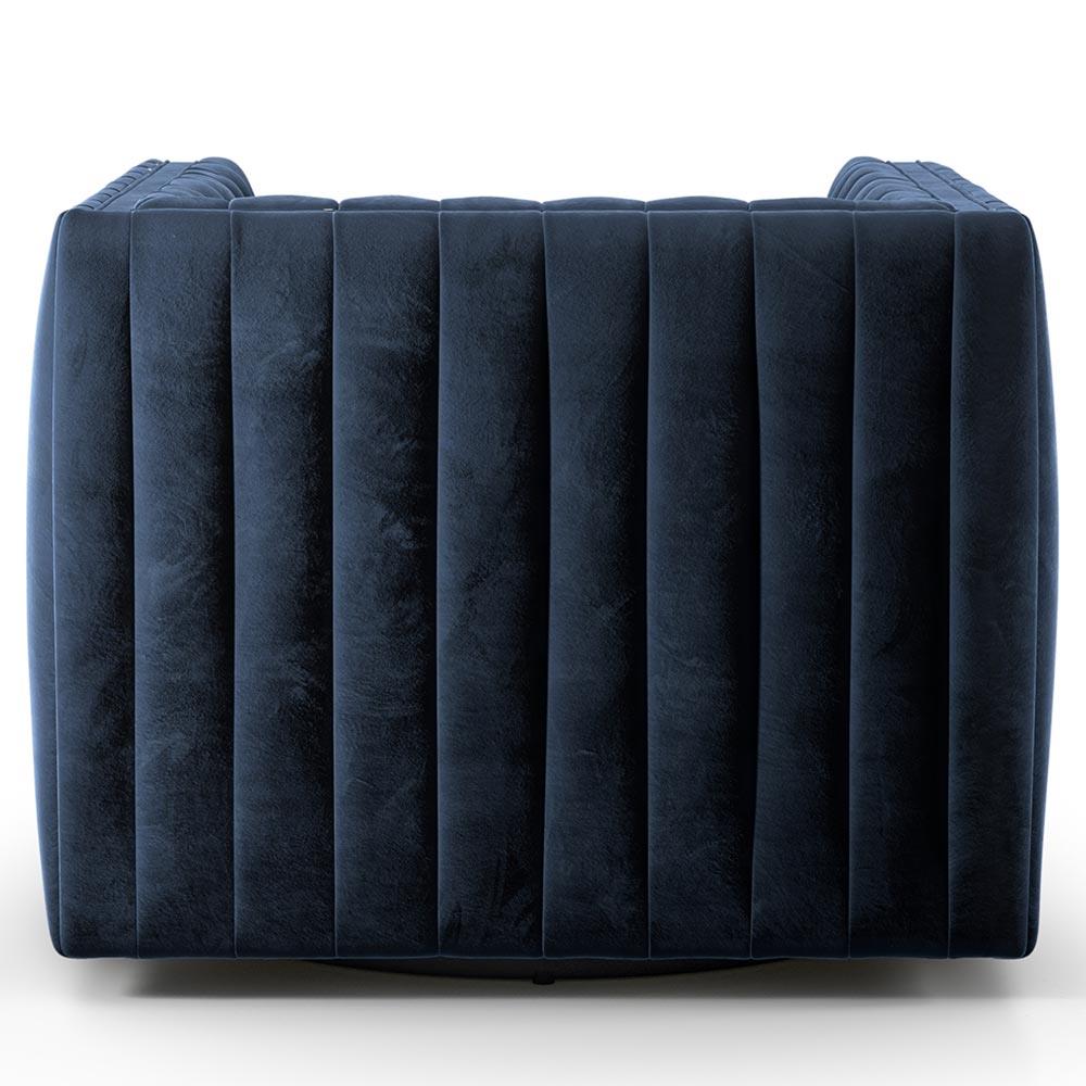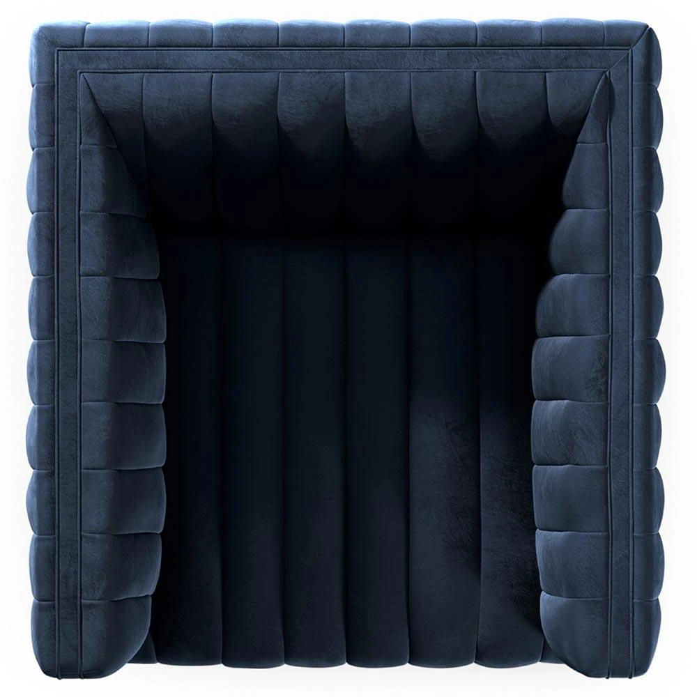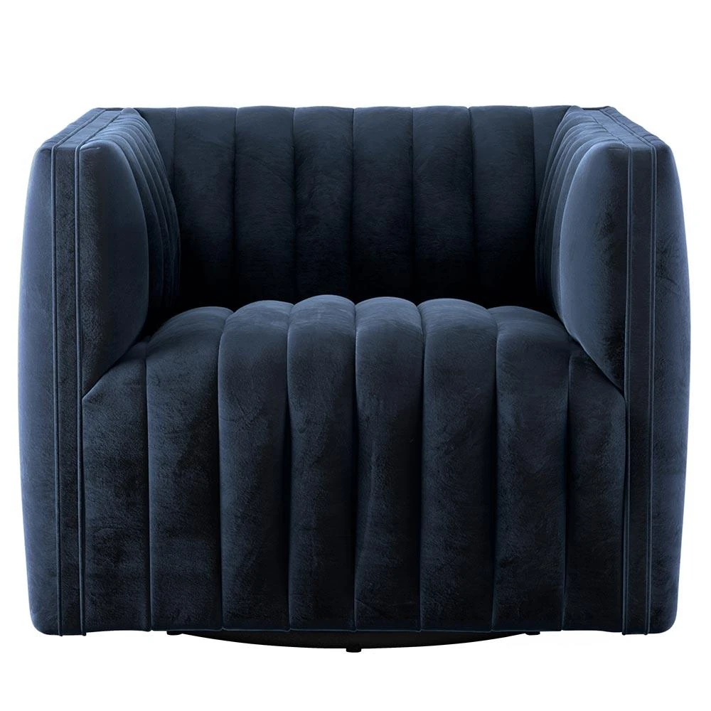 Leo Mid Century Modern Navy Blue Upholstered Fabric Swivel Tufted Occasional Chair