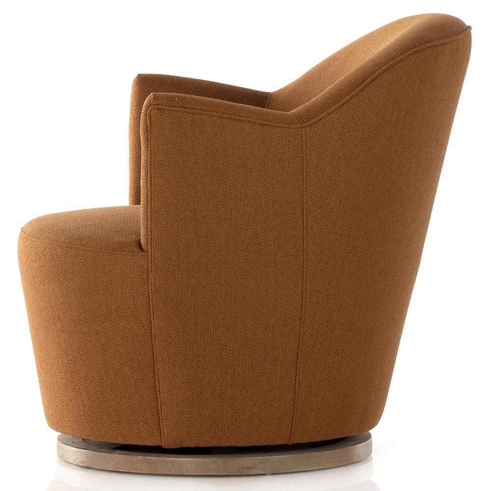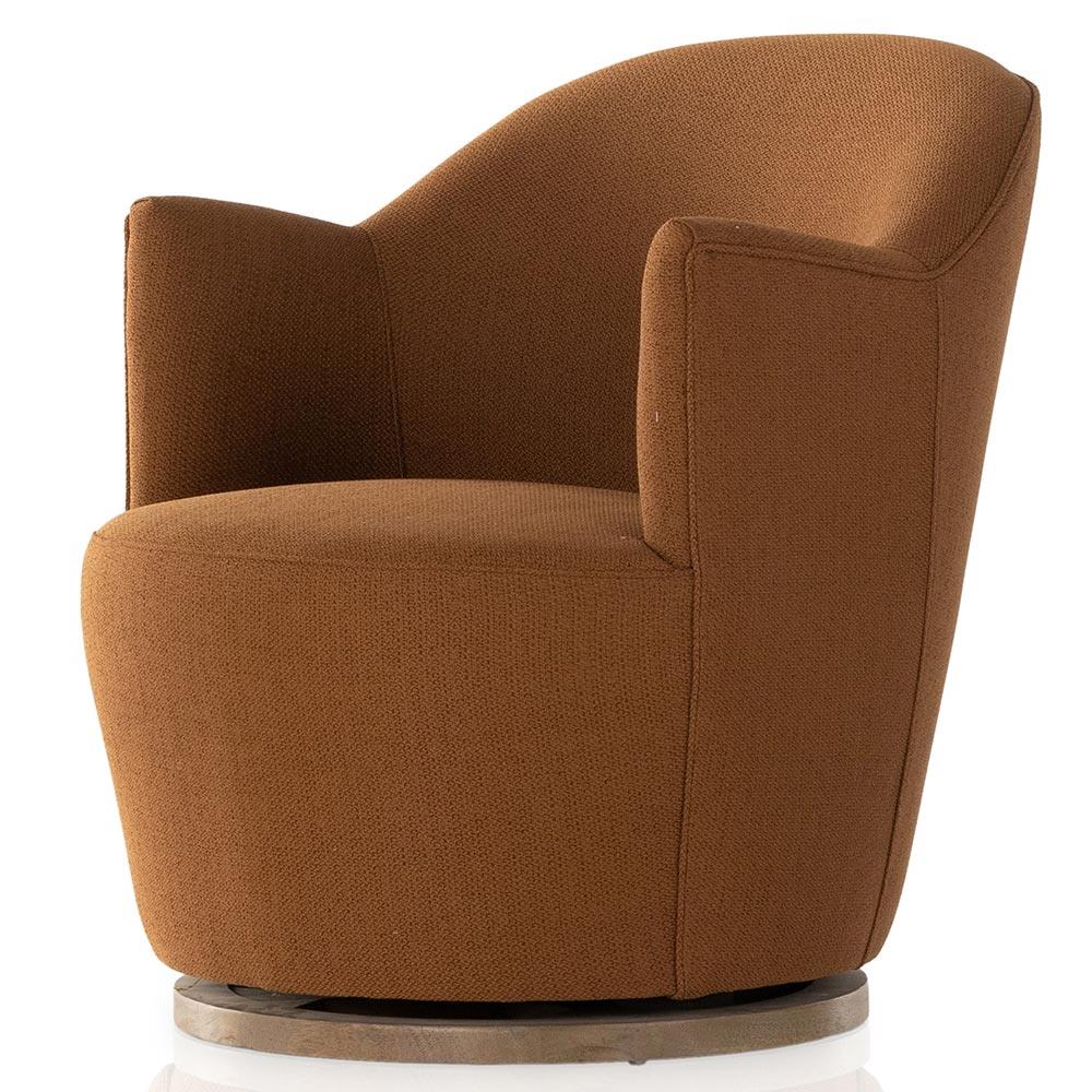 • Zevanna Updated Traditional Caramel Brown Leather Barrel Swivel Chair|Kathy Kuo Home