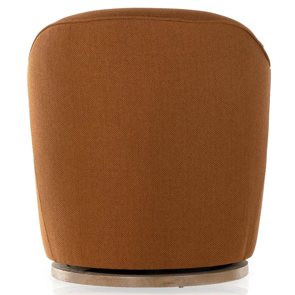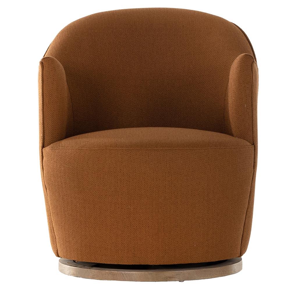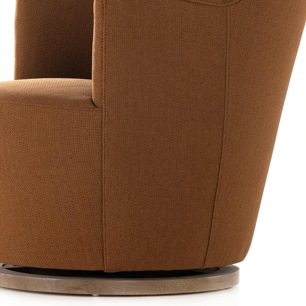 Samuel French Country Brown Upholstered Wood Swivel Arm Chair