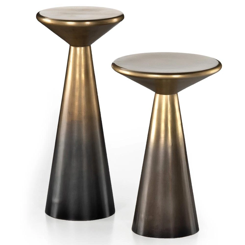 Maddux Mid Century Antique Brass Ombre Iron Accent Pedestal Side Tables - Set of 2