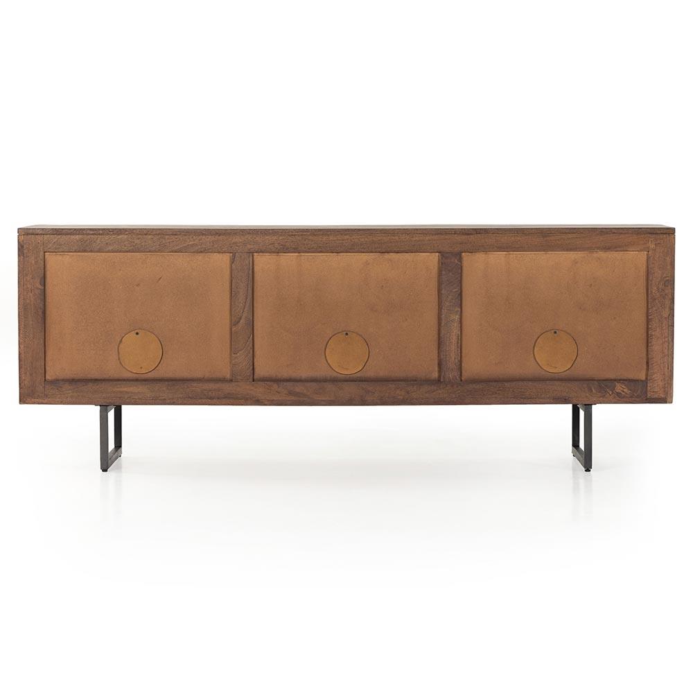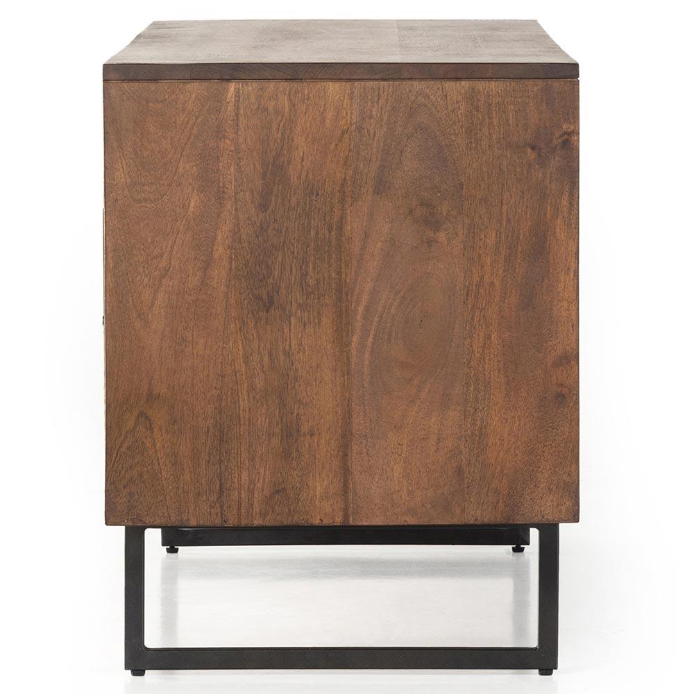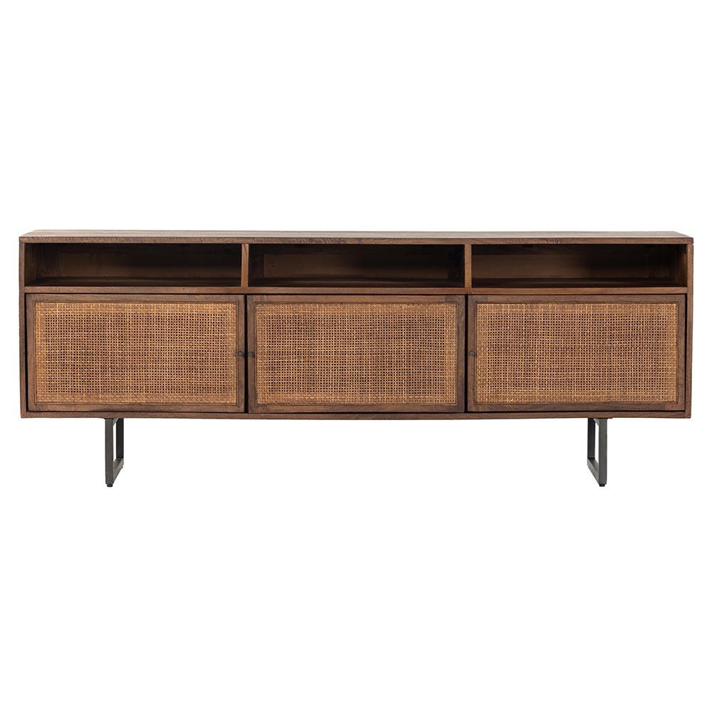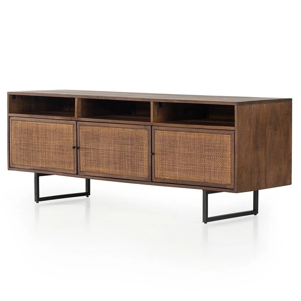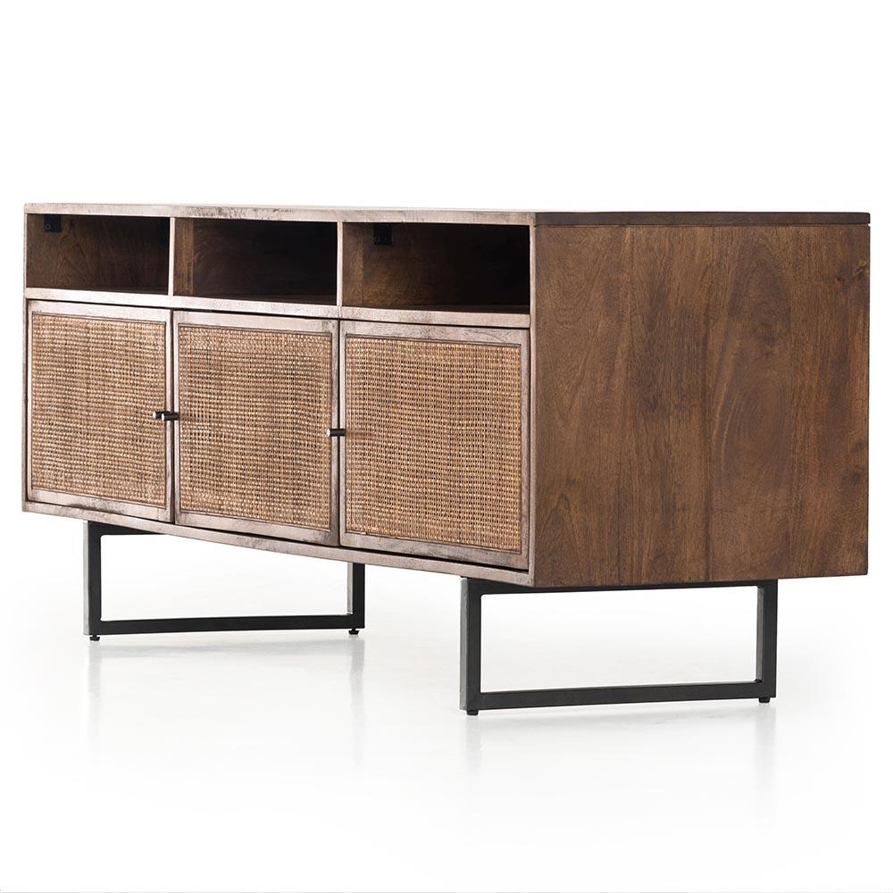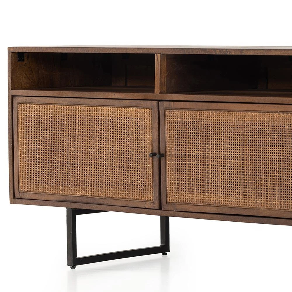 Emilie Mid Century Brown Mango Wood Woven Cane Iron Base Media Console - 65"W