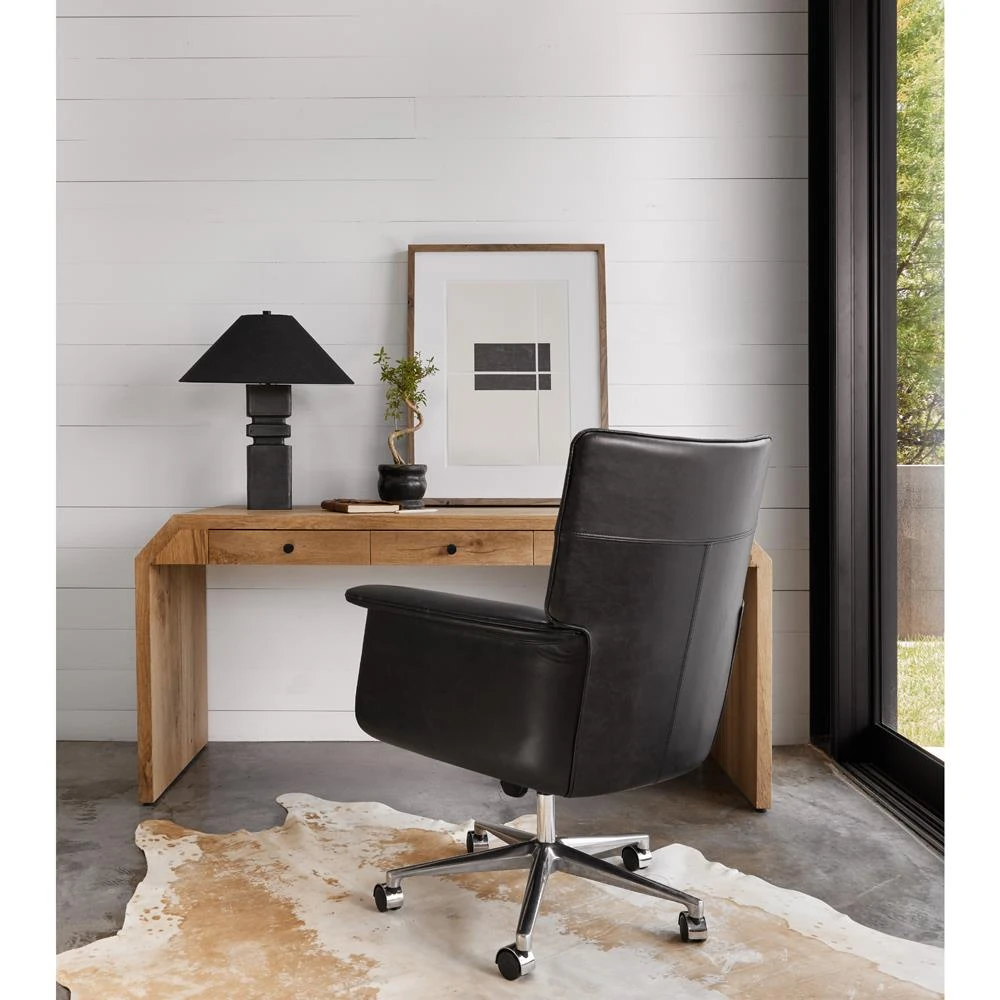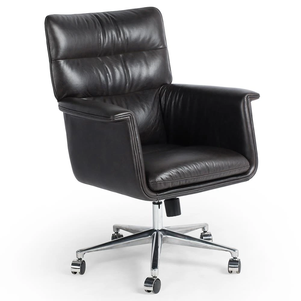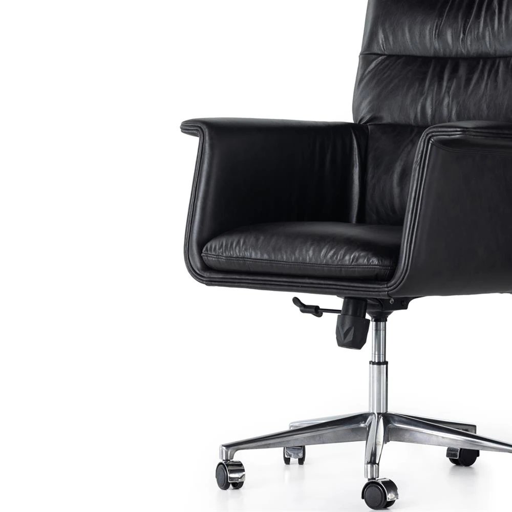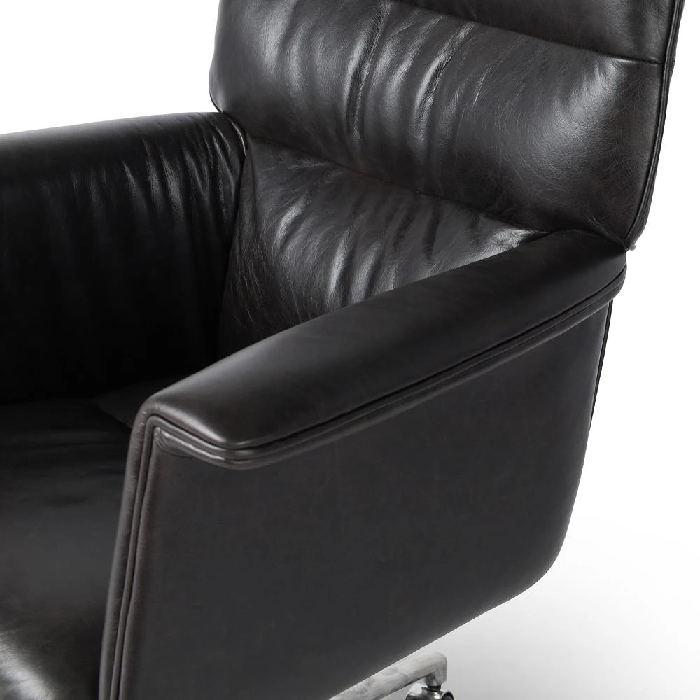 Arslan Industrial Loft Black Upholstered Leather Swivel Executive Office Chair